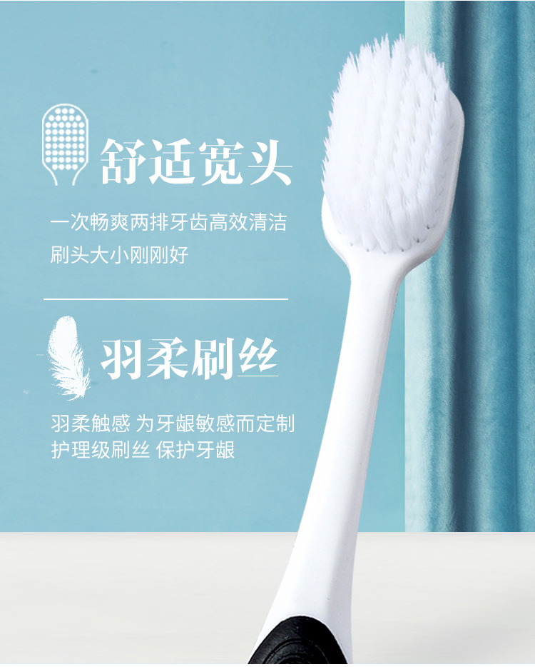 「买1送1!到手两套」宽头牙刷软毛情侣细软家庭装组合装防牙龈出血牙刷口腔护理
