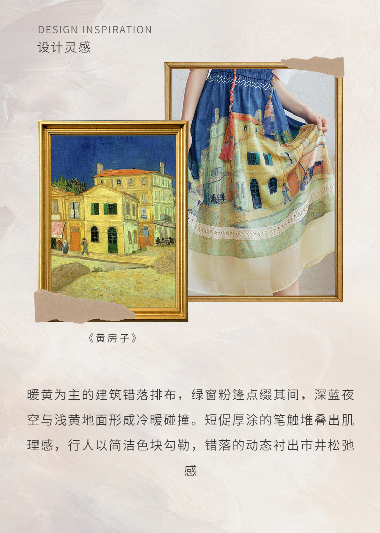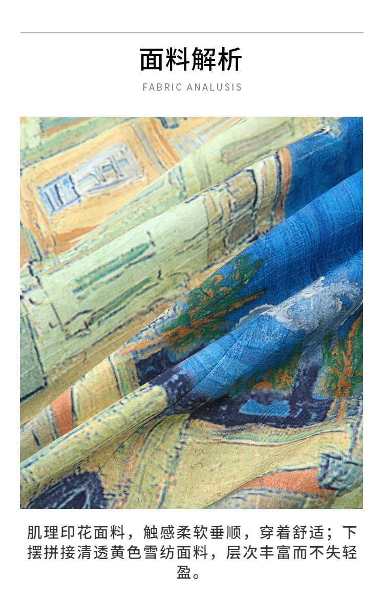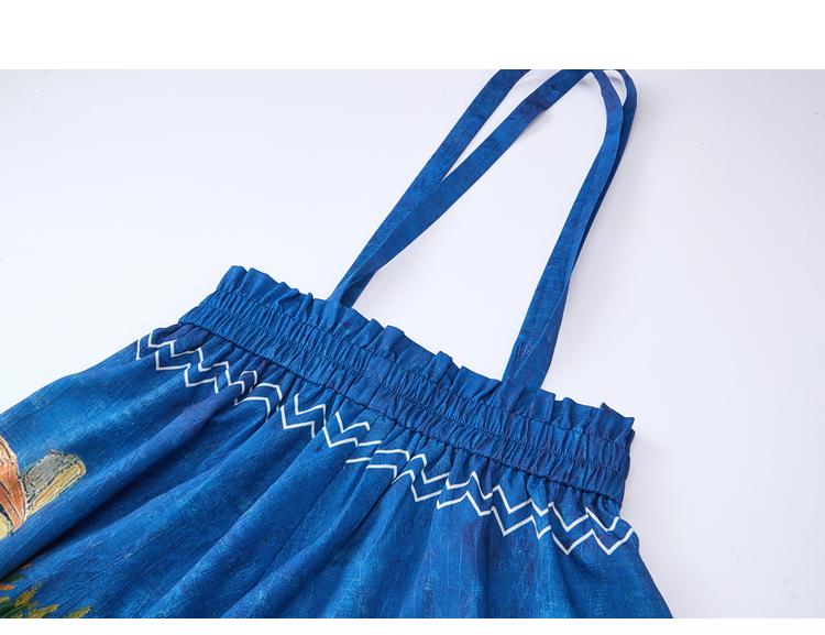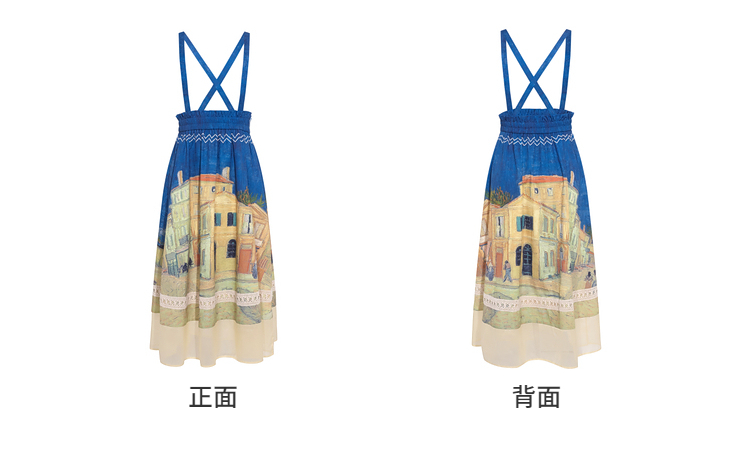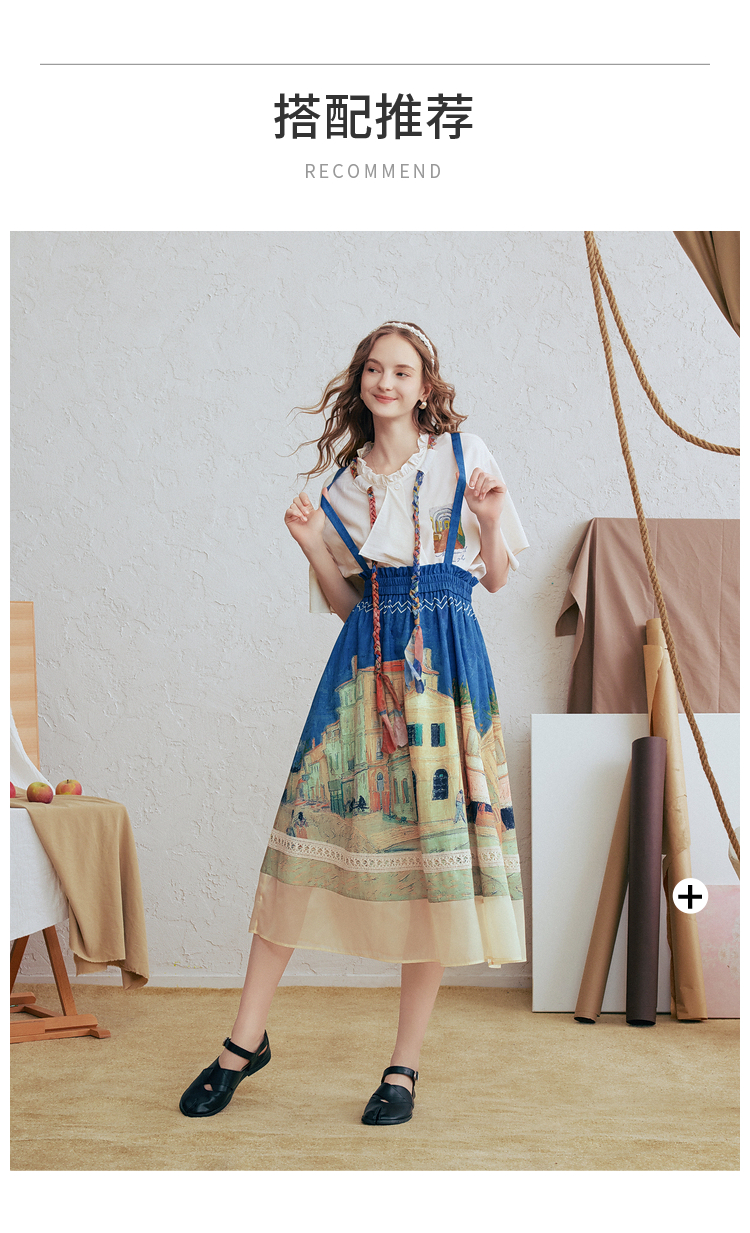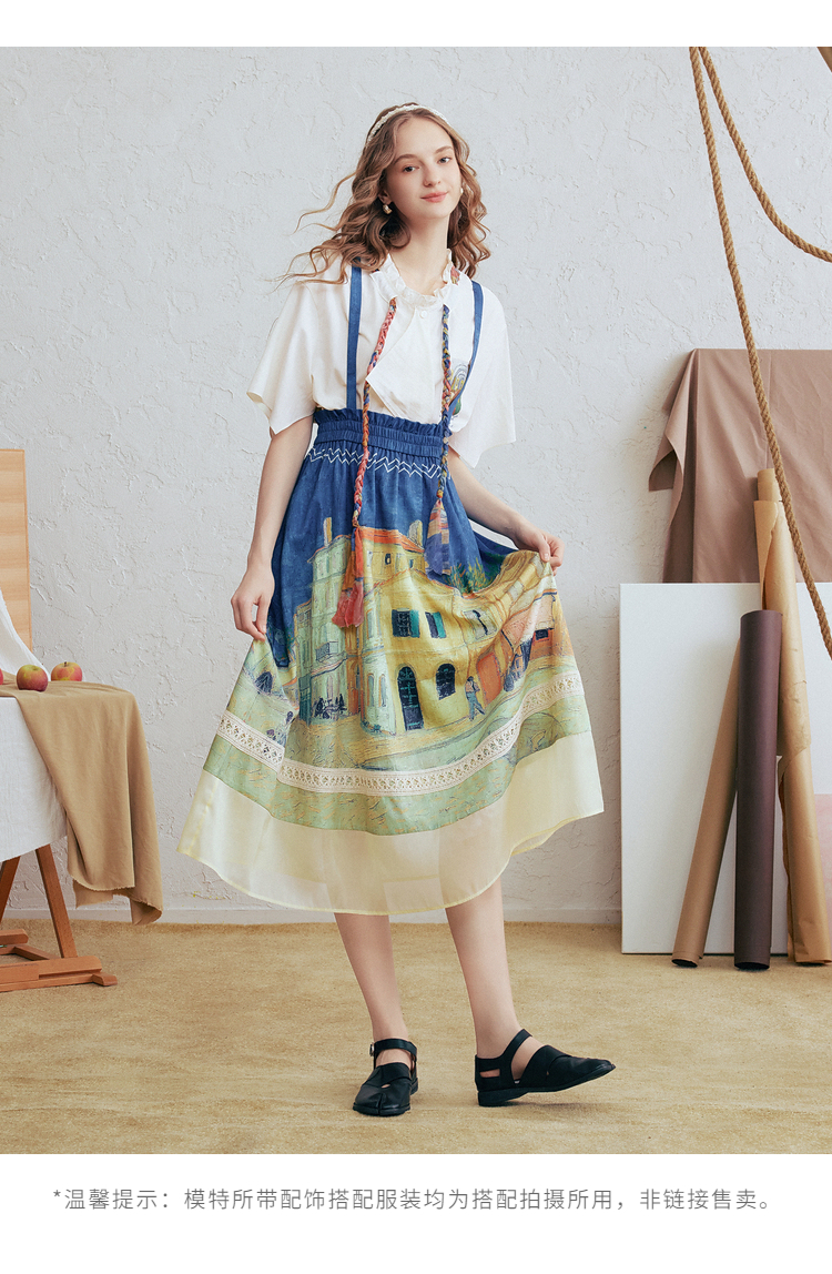 两三事梵高文艺 馥郁寻梦 2026春季新款文艺风印花可拆背带半身裙