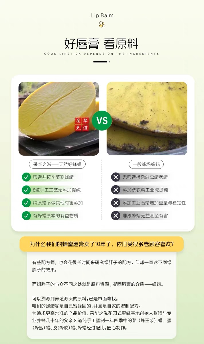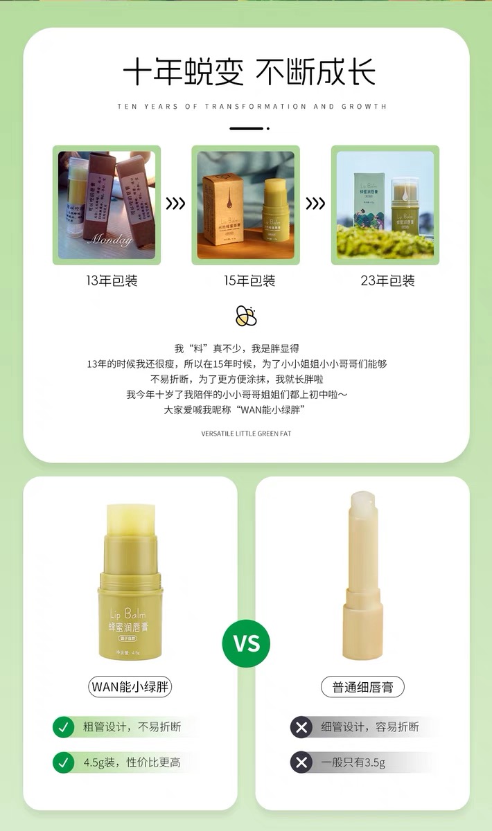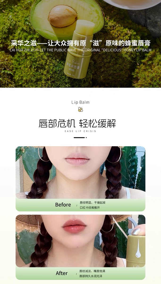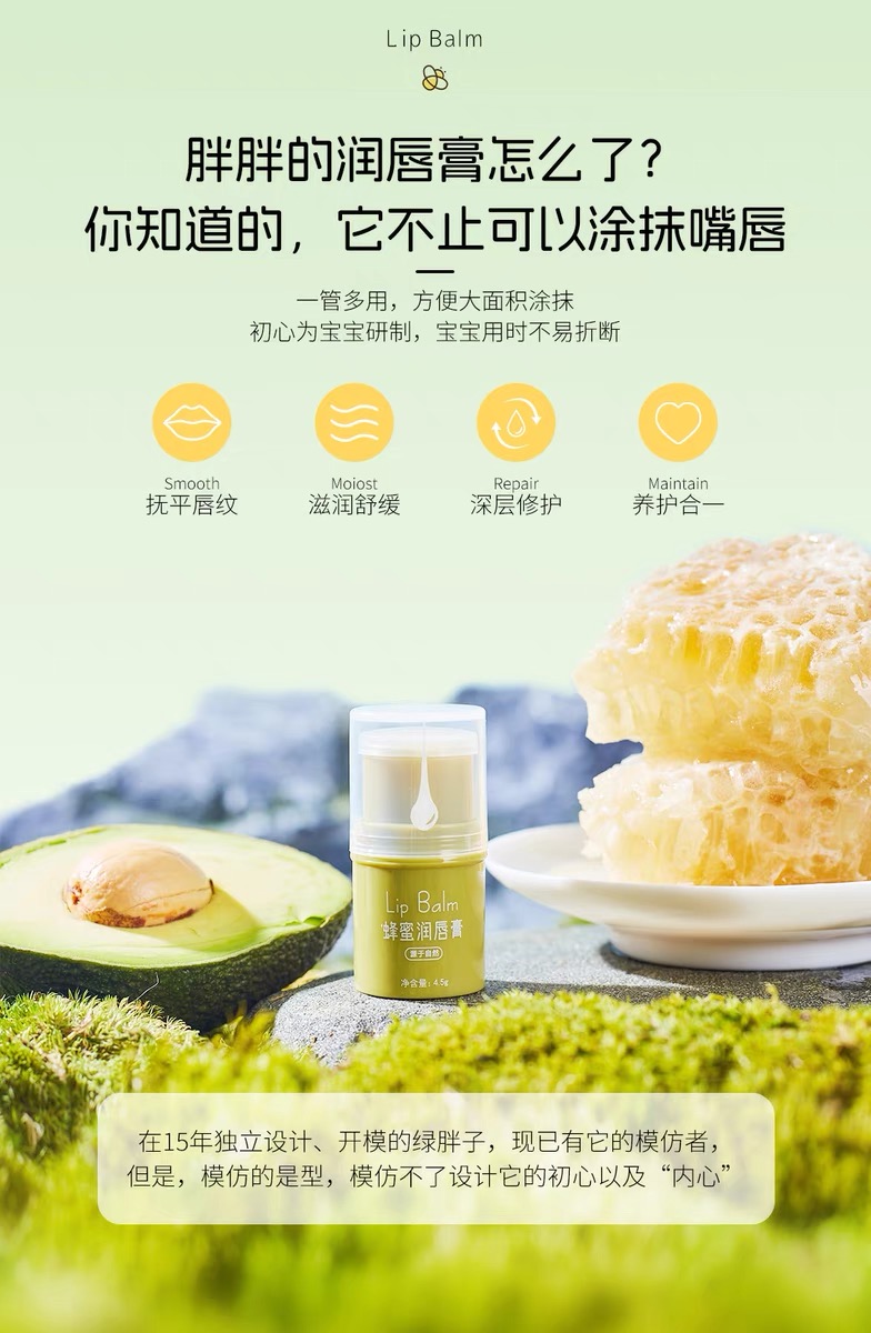 采华之滋·蜂蜜润唇膏小绿胖子 嘴唇干裂滋润保湿成分安全