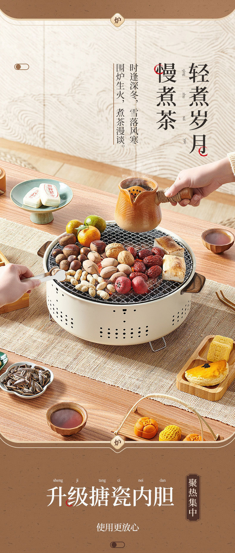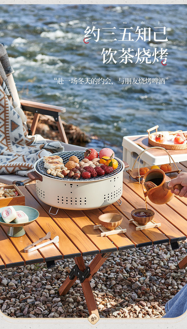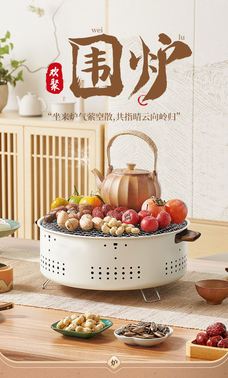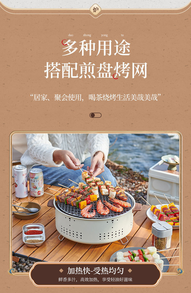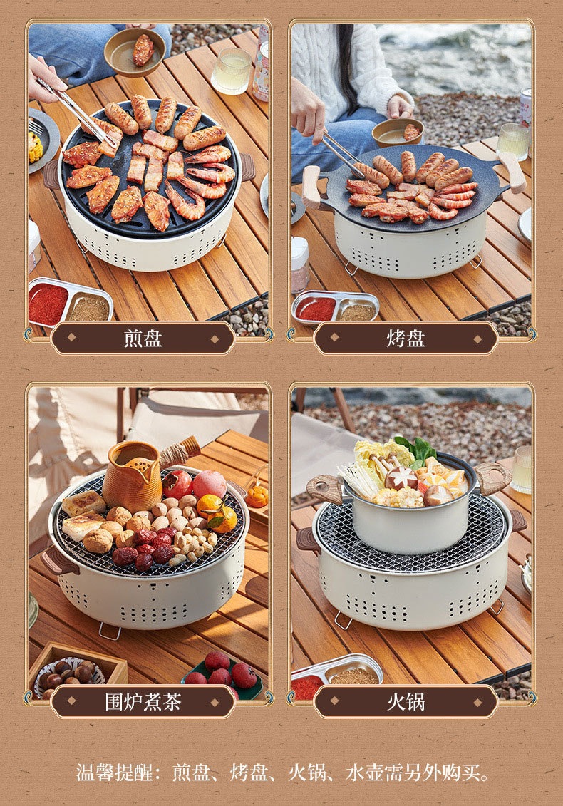 【烧烤焙炉两不误❗️新款围炉】煮茶家用烧烤架 户外露营多功能烧烤炉 小型木炭取暖碳烤炉