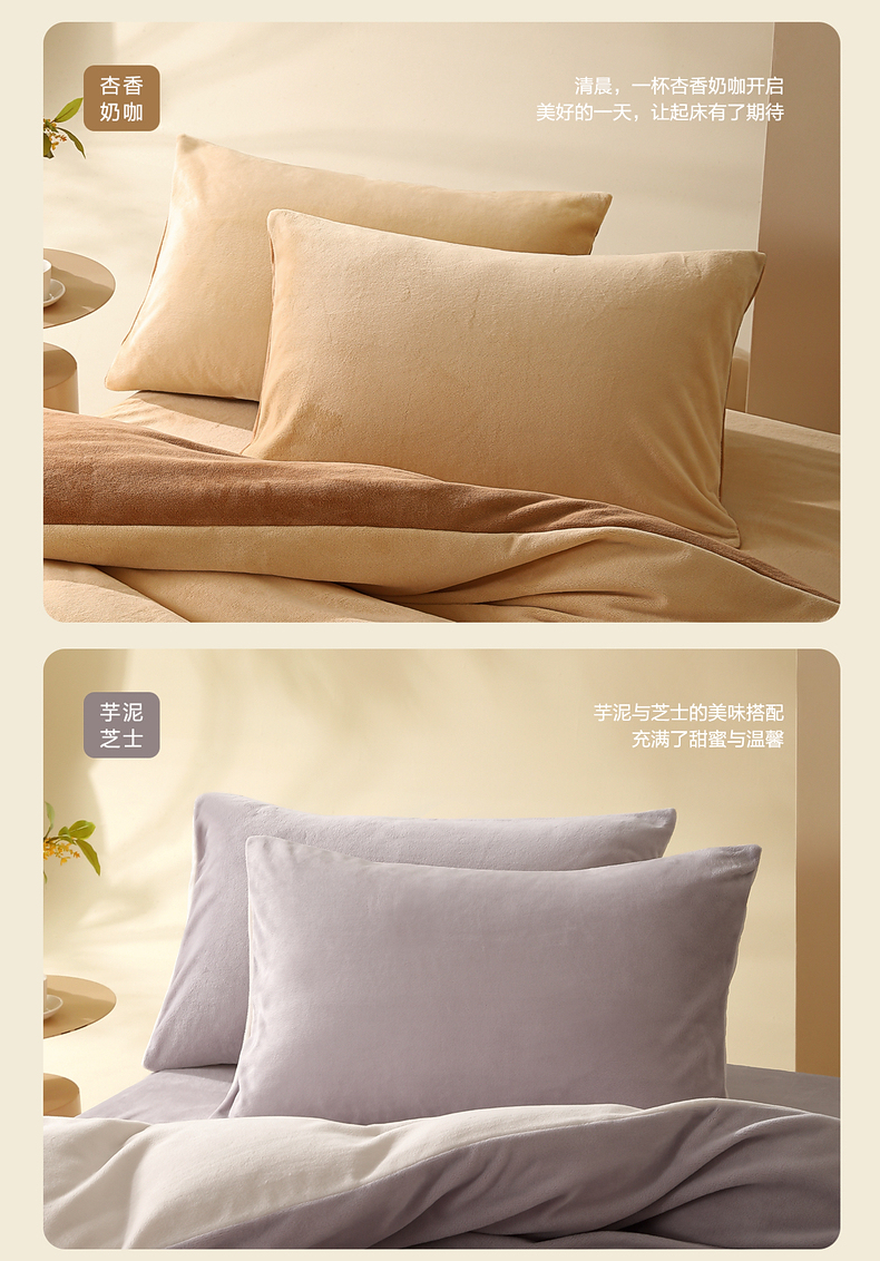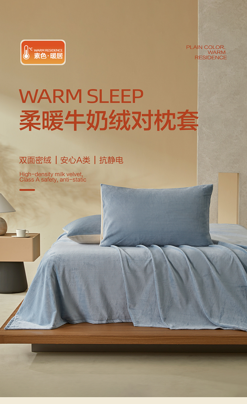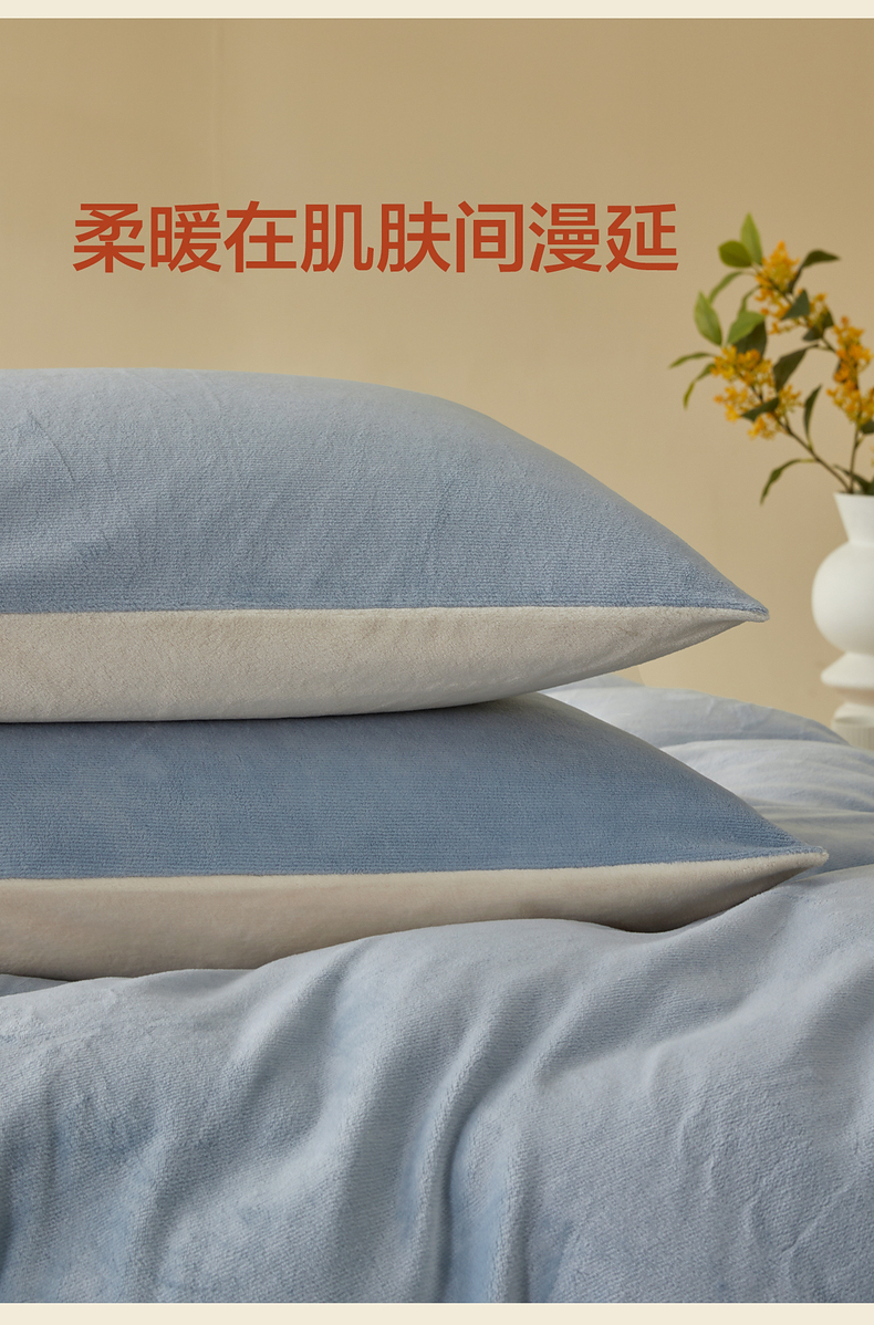 水星家纺A类抗静电牛奶绒对枕套暖绒枕头套一对装双人保暖床品