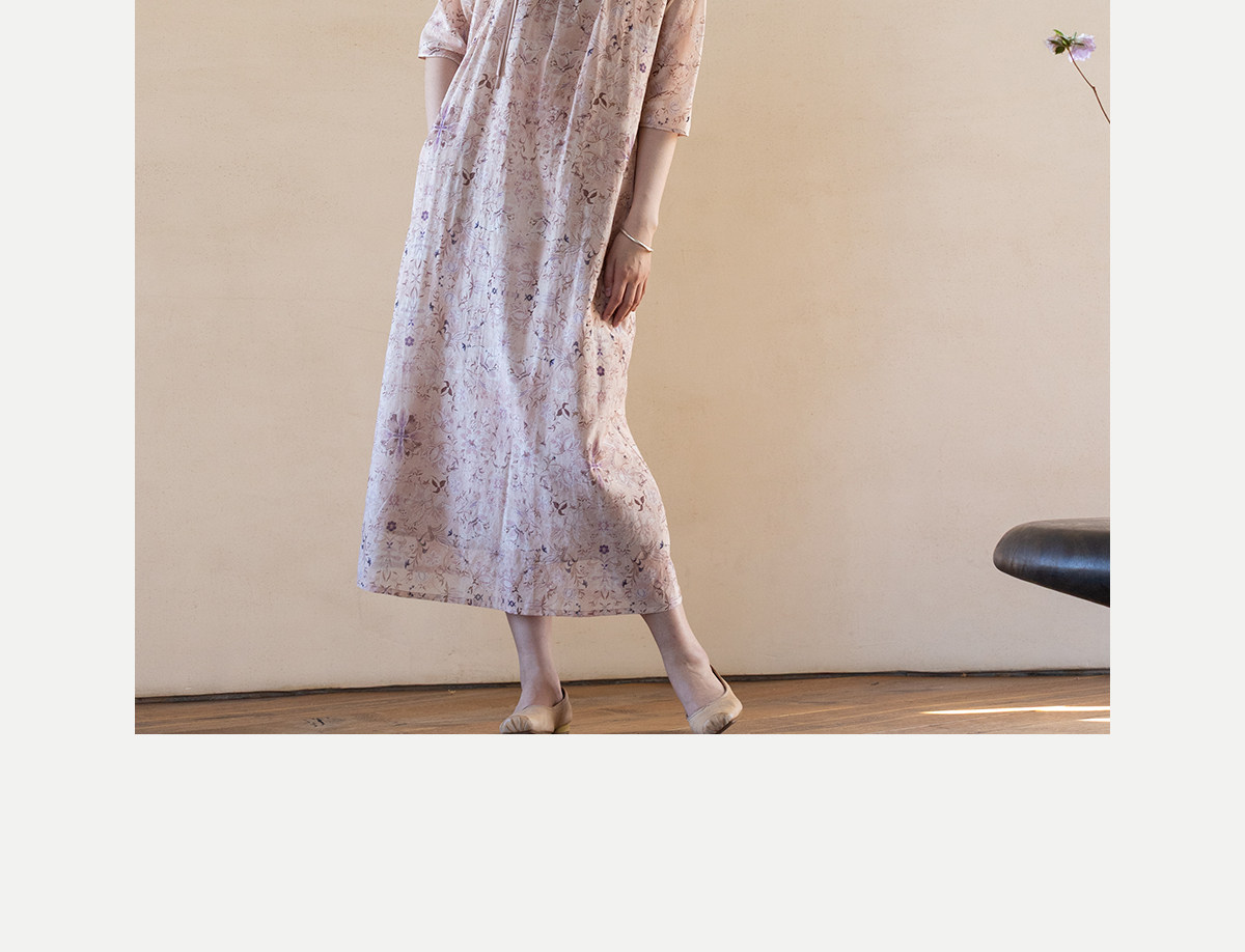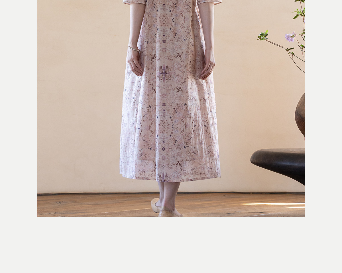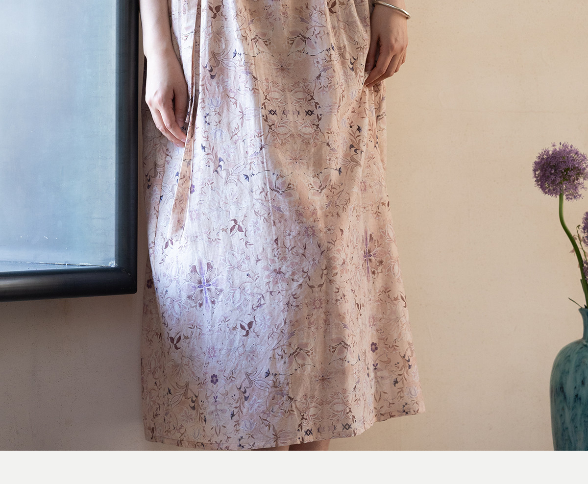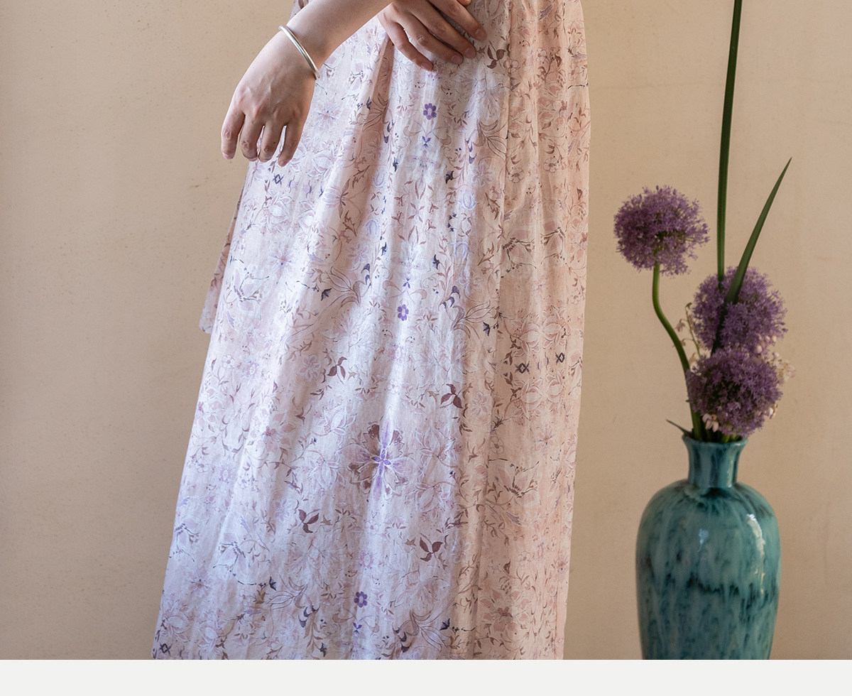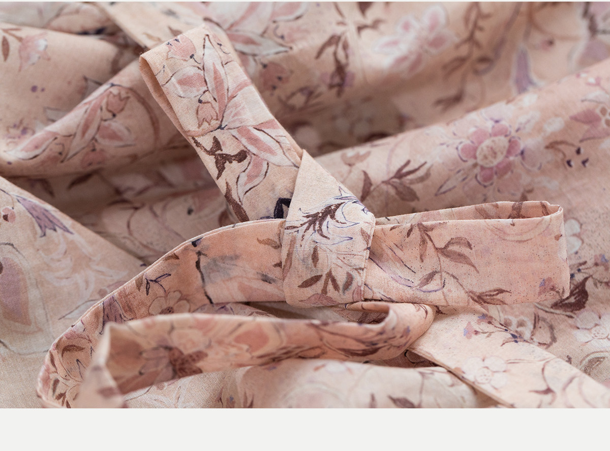 牧衣游原创 丝棉印花连衣裙新款宽松古朴文艺气质碎花长裙 半山海