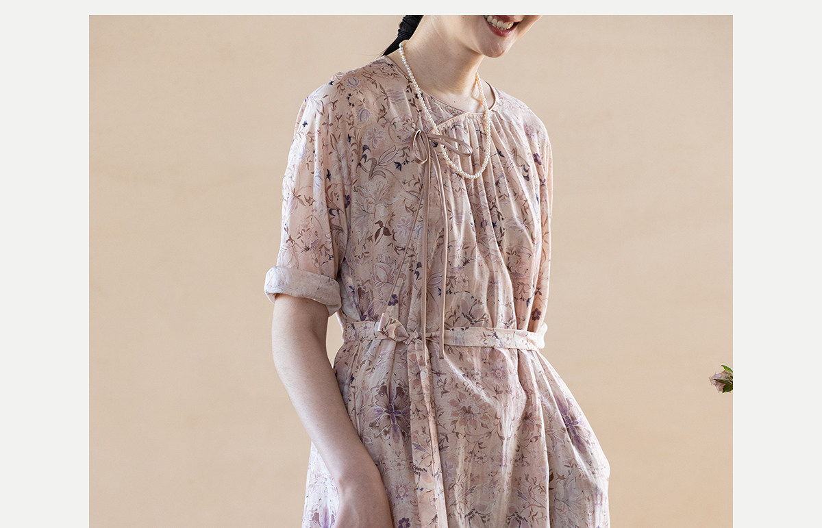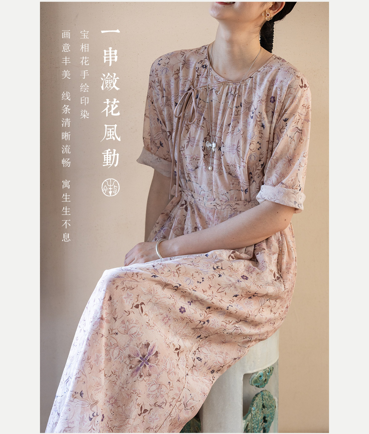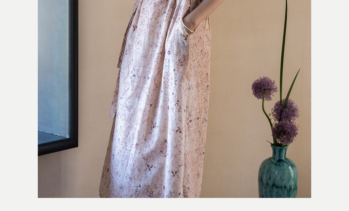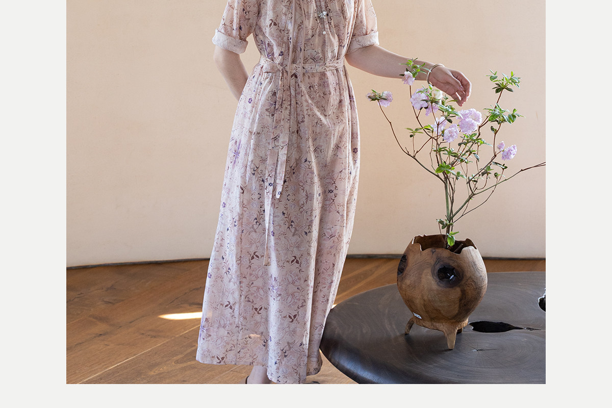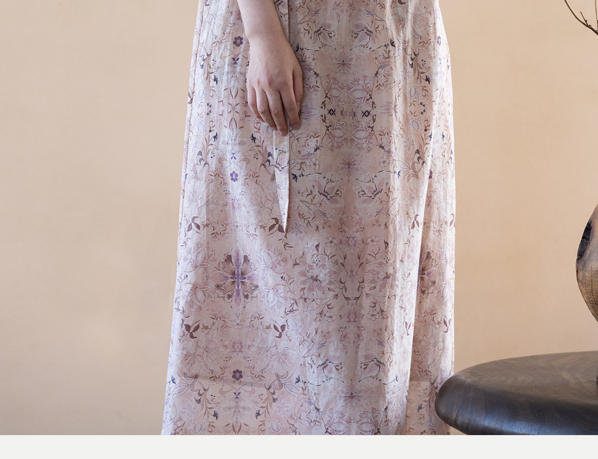 牧衣游原创 丝棉印花连衣裙新款宽松古朴文艺气质碎花长裙 半山海