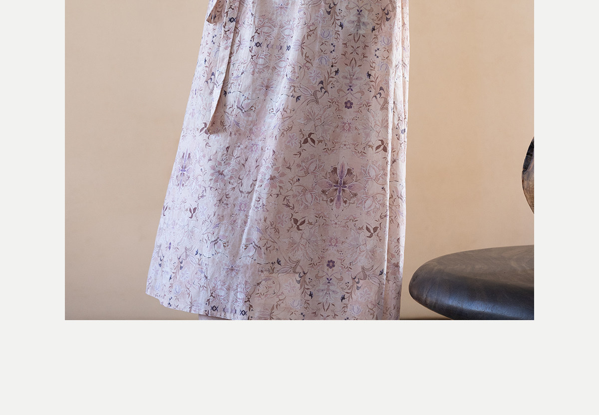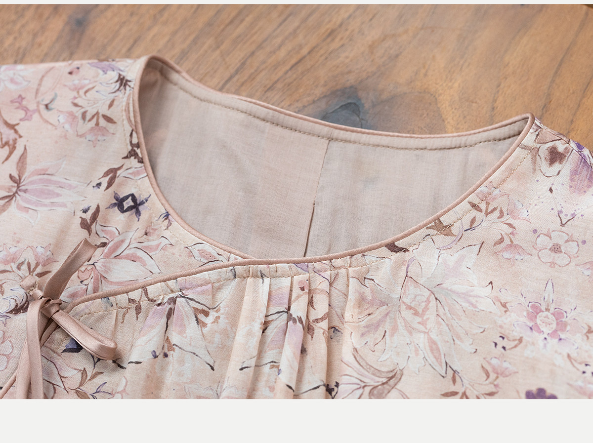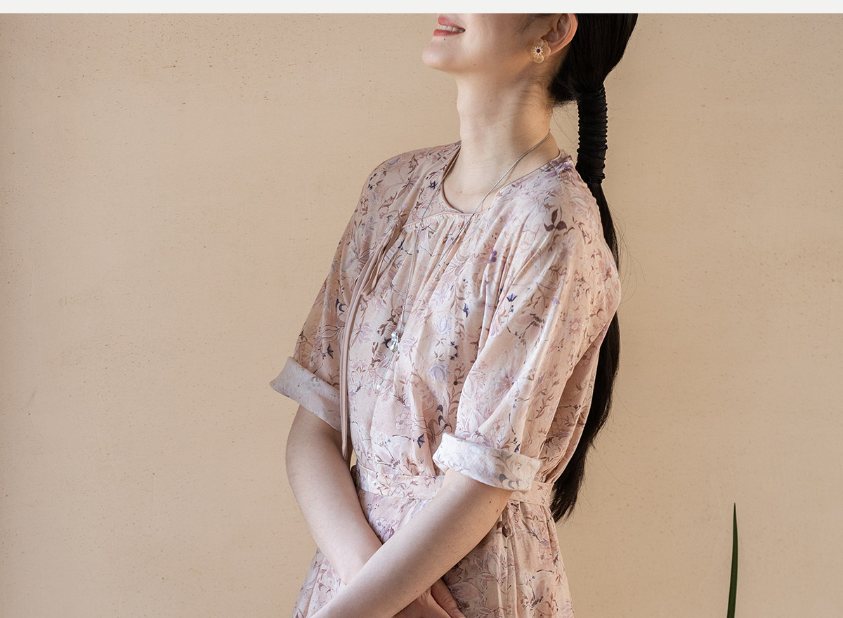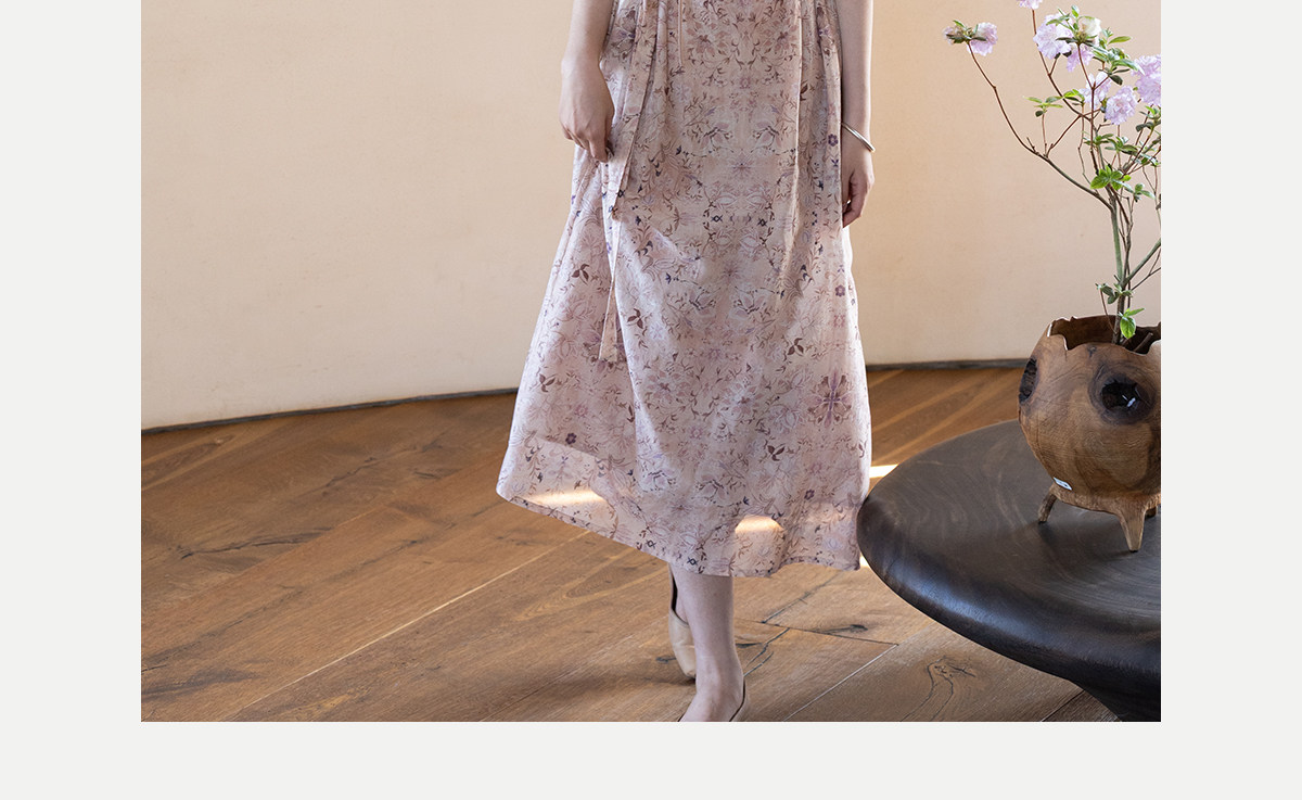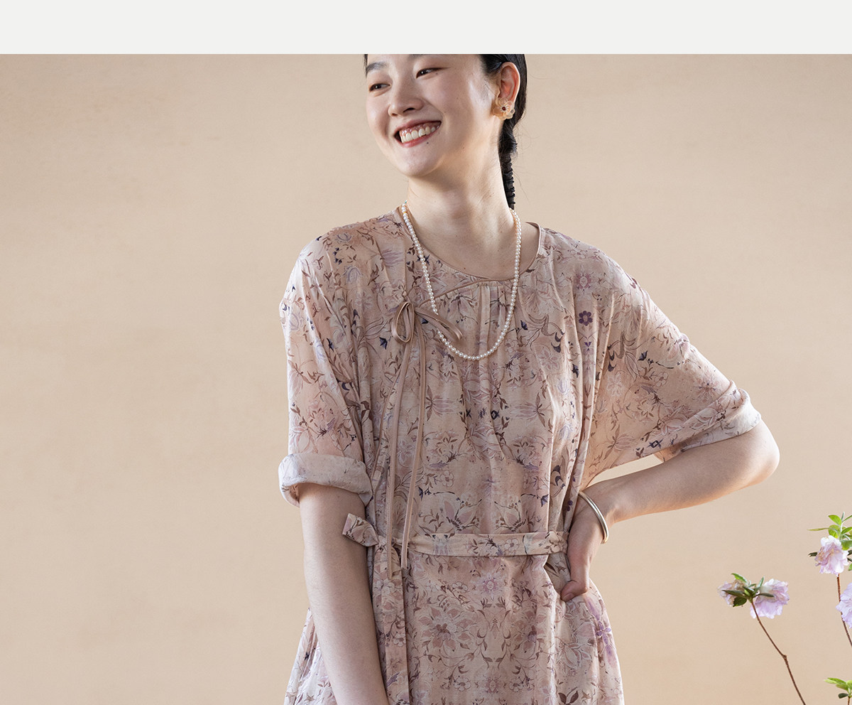 牧衣游原创 丝棉印花连衣裙新款宽松古朴文艺气质碎花长裙 半山海