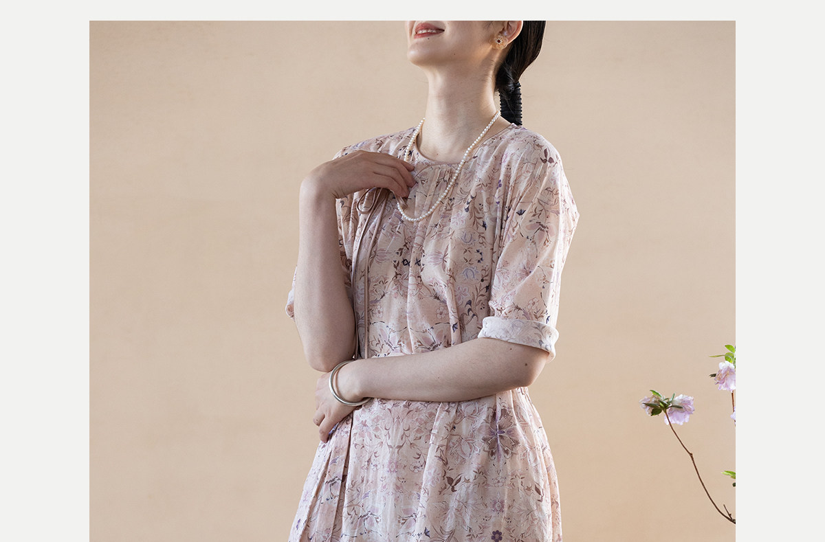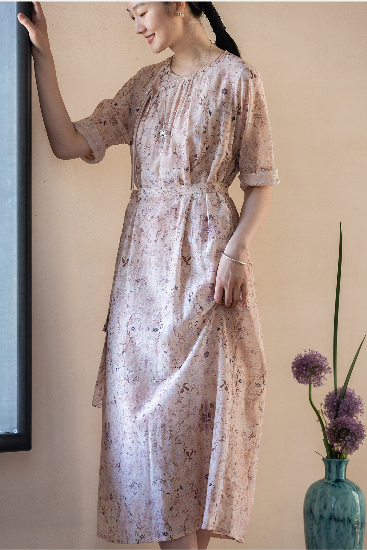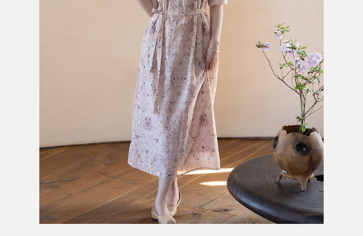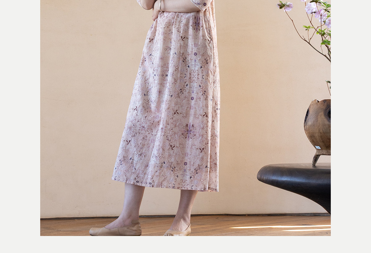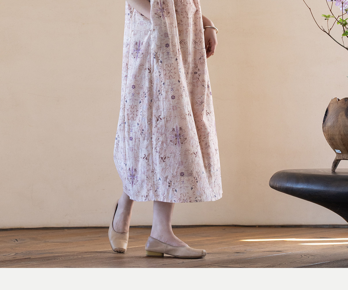 牧衣游原创 丝棉印花连衣裙新款宽松古朴文艺气质碎花长裙 半山海