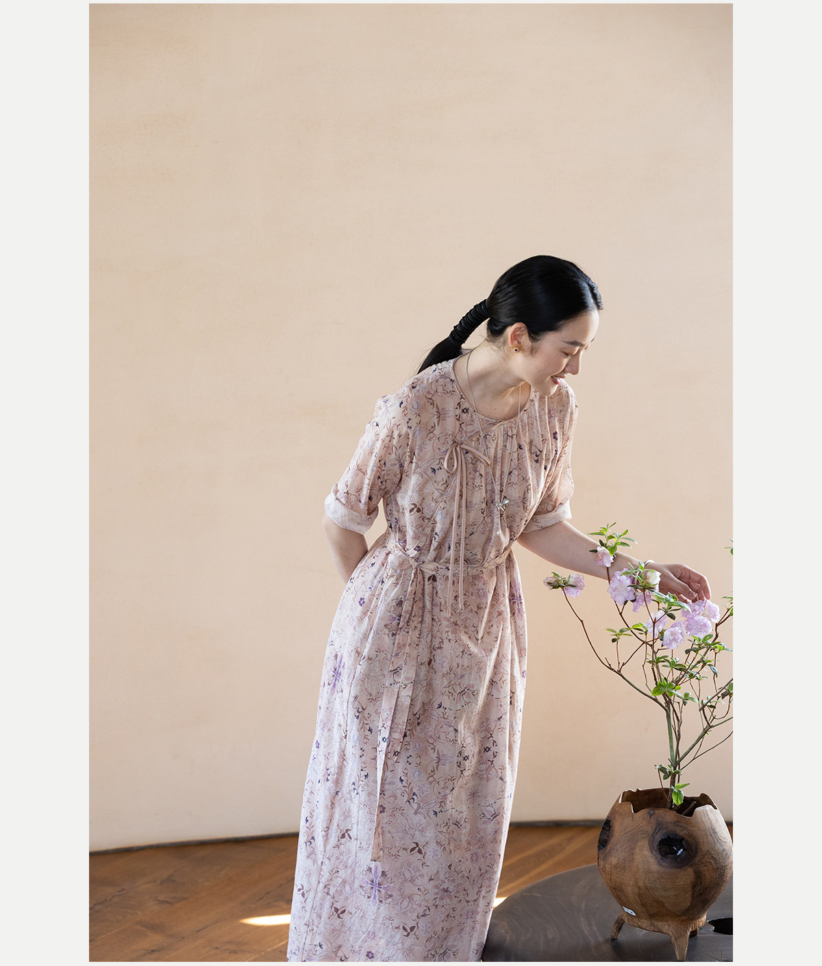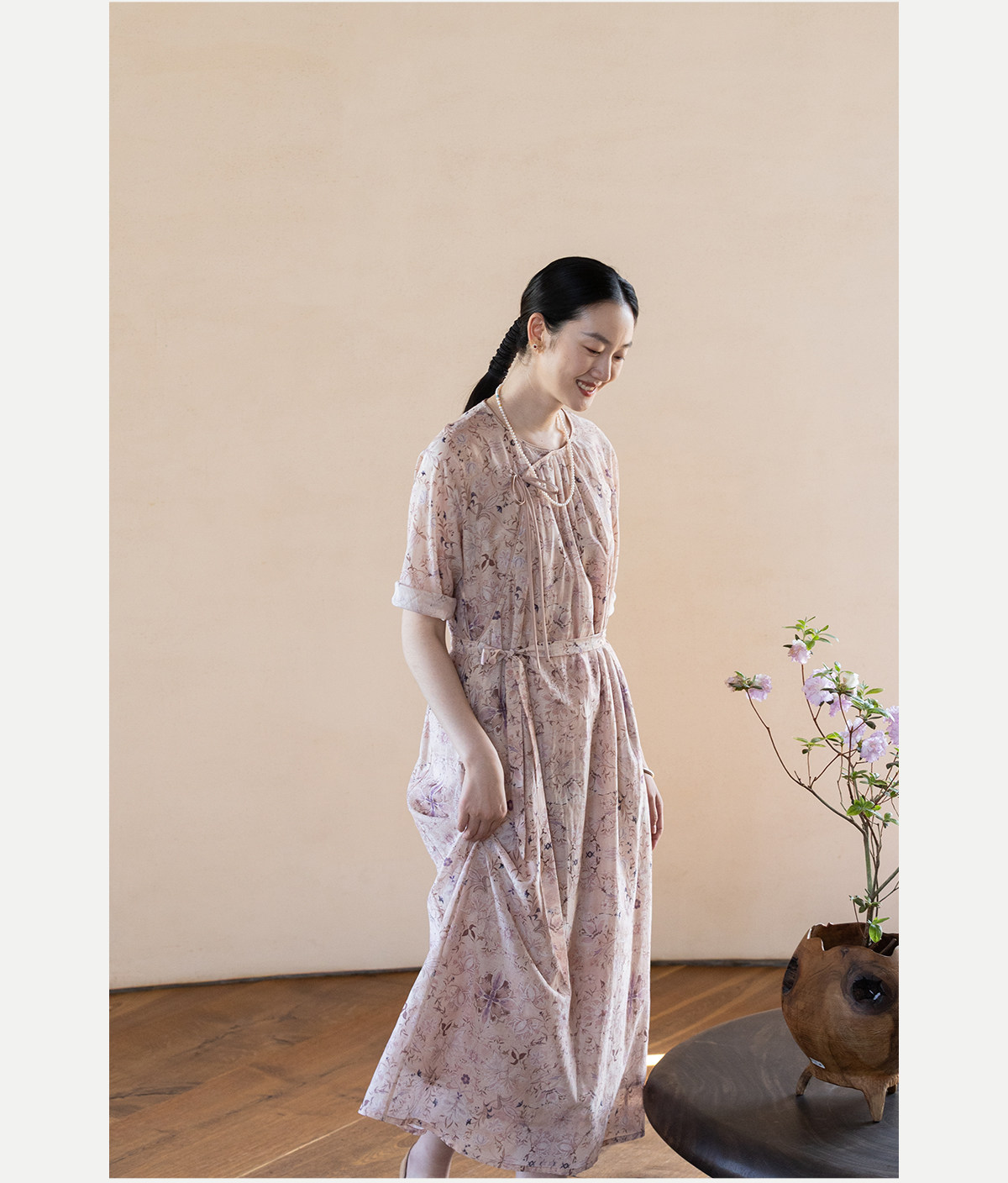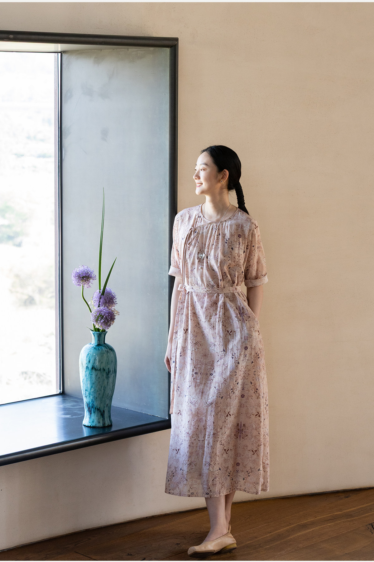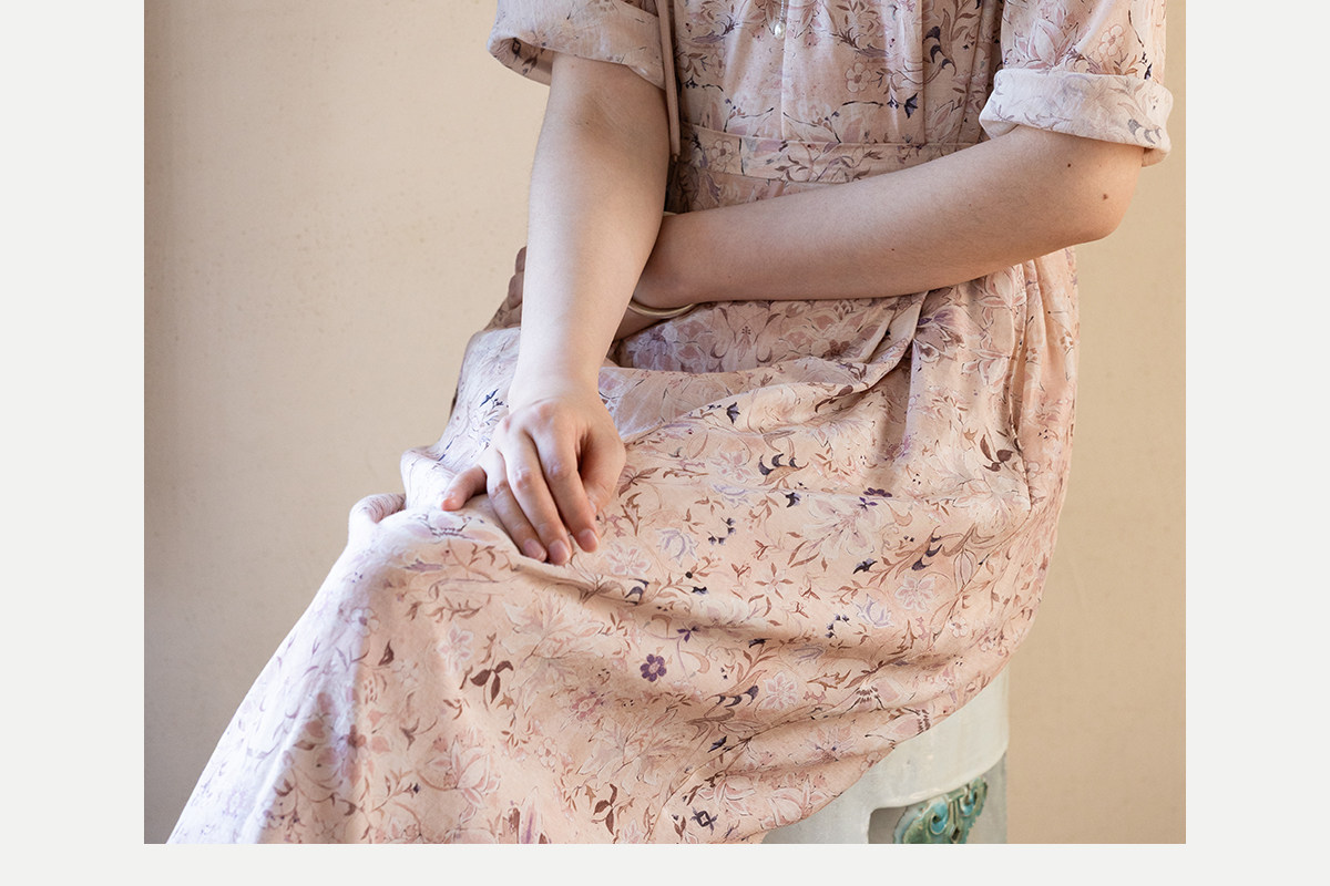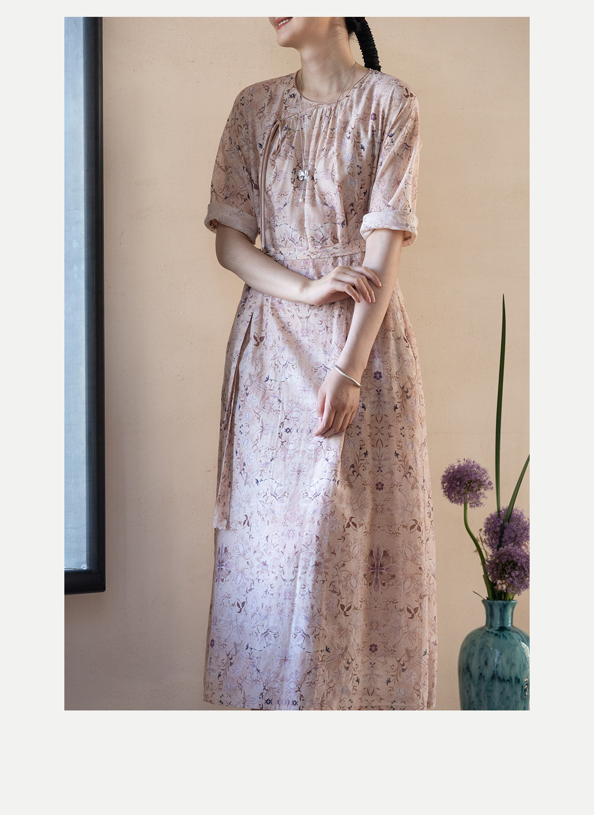 牧衣游原创 丝棉印花连衣裙新款宽松古朴文艺气质碎花长裙 半山海