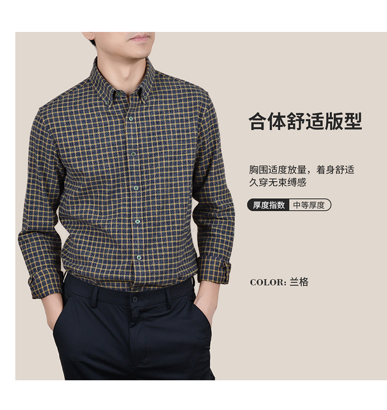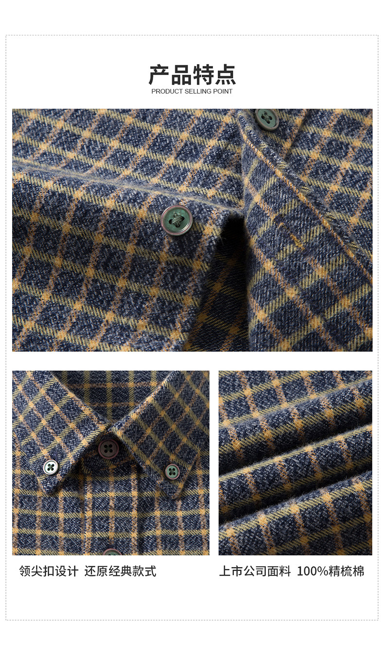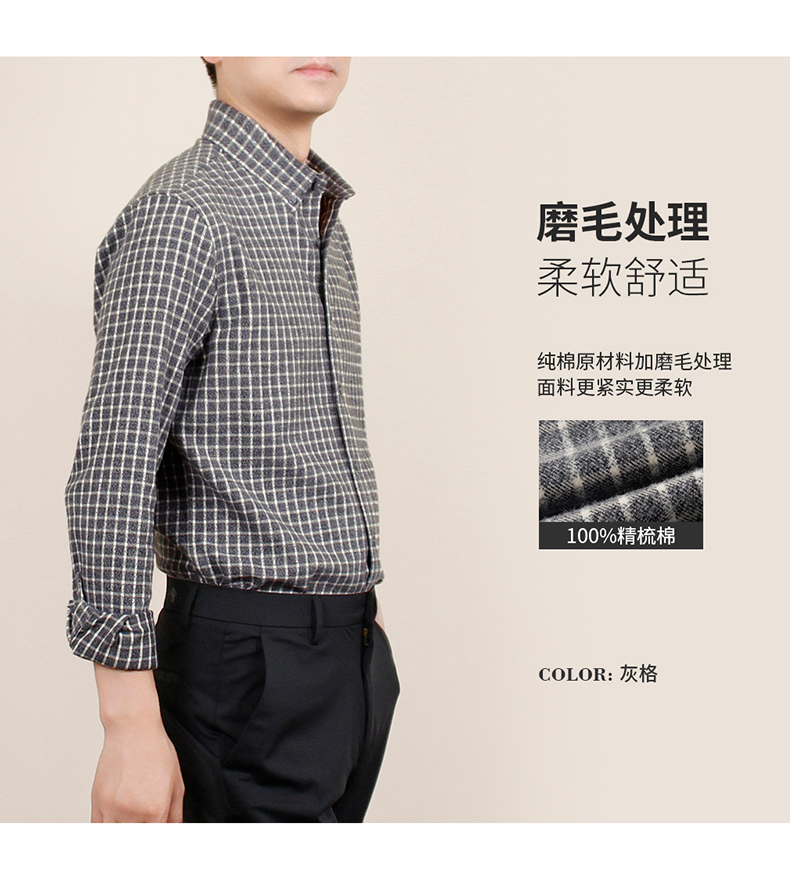 【100棉】罗蒙男士全棉磨毛长袖衬衫经典格纹舒适百搭休闲通勤衬衫