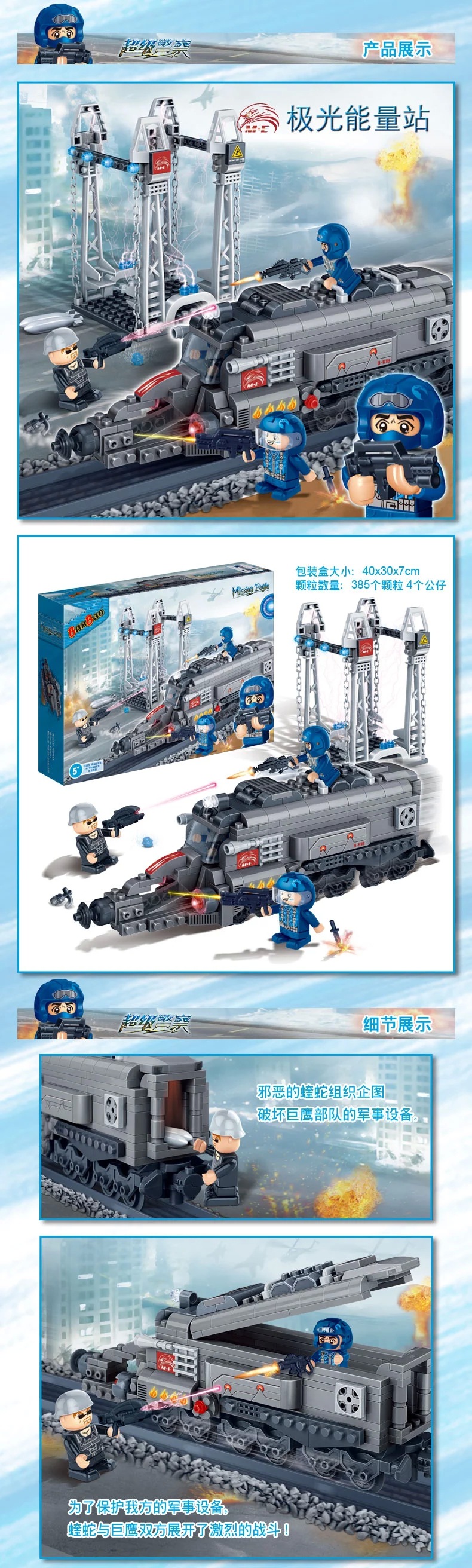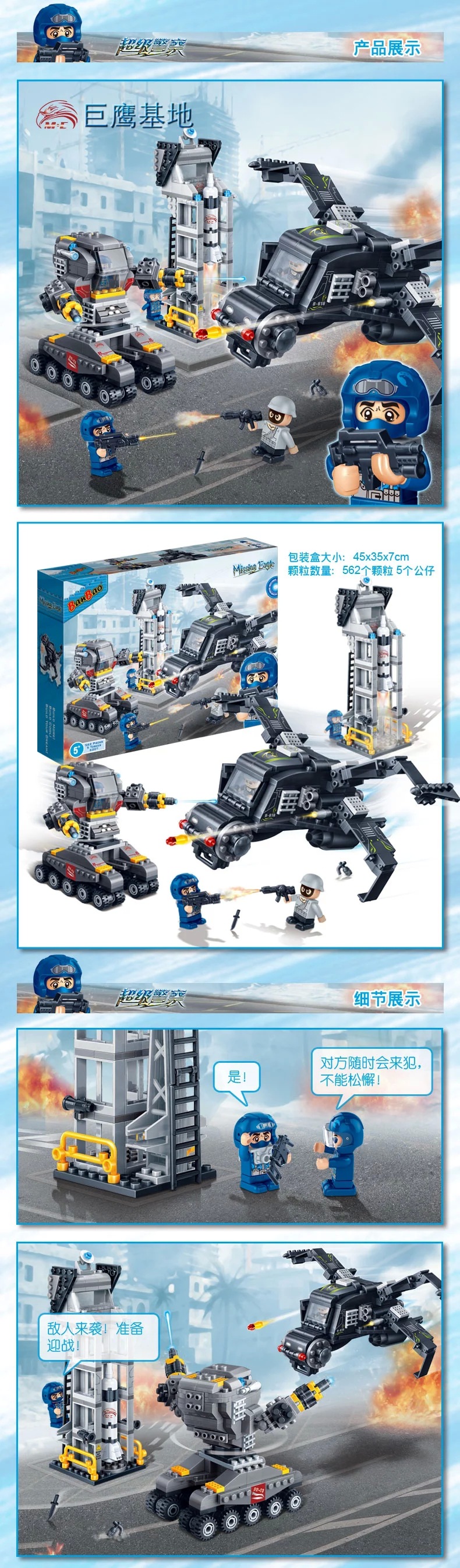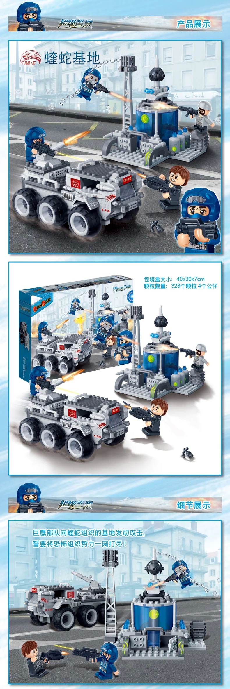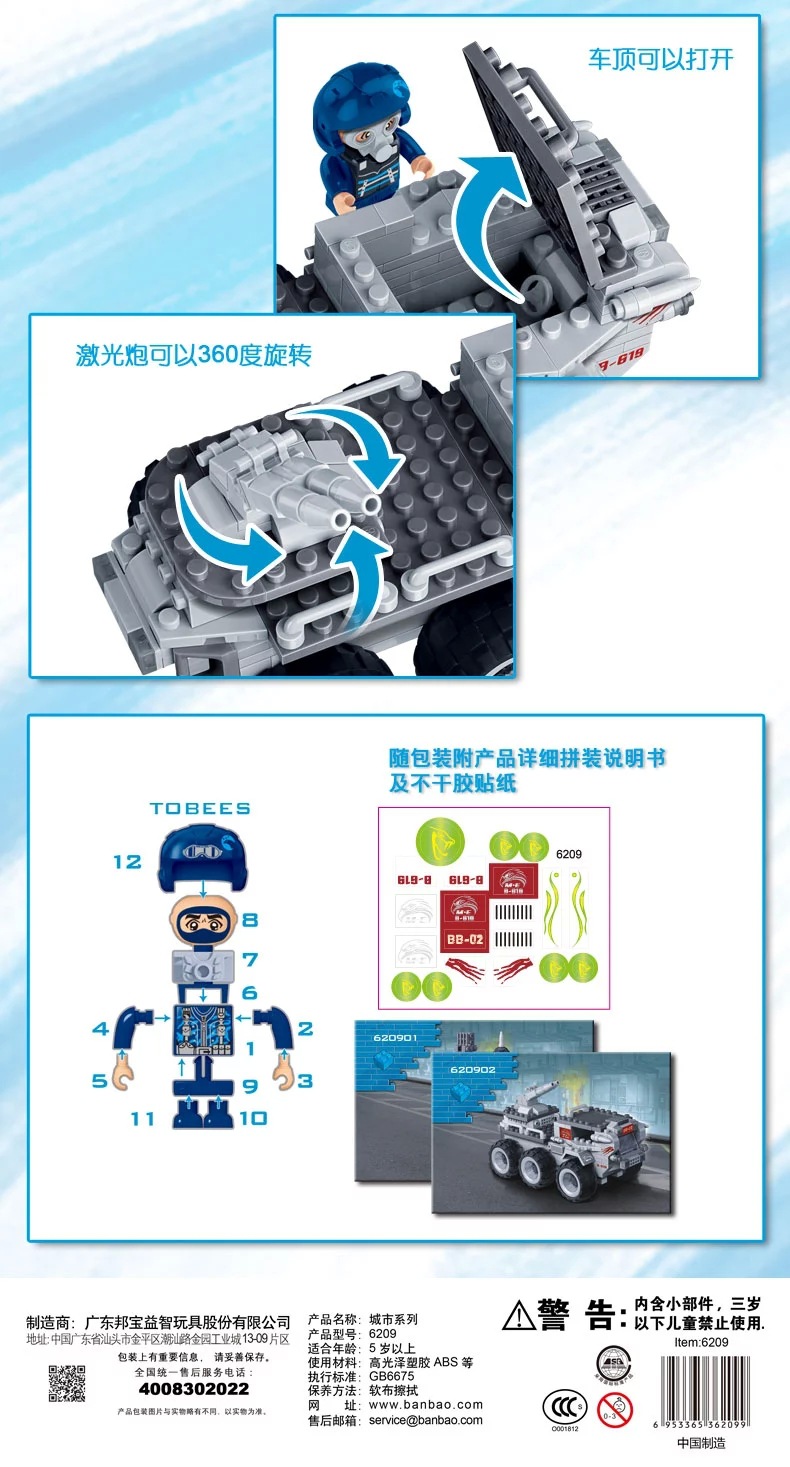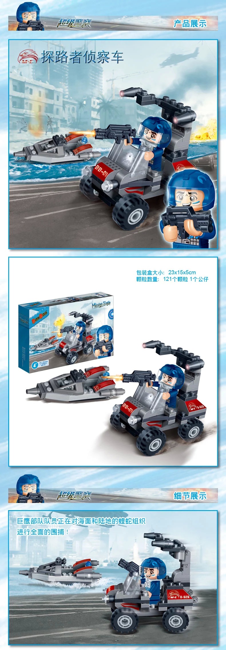 兑换专区邦宝小颗粒积木侦查车能量站警察系列巨鹰基地塑料拼插装男孩玩具