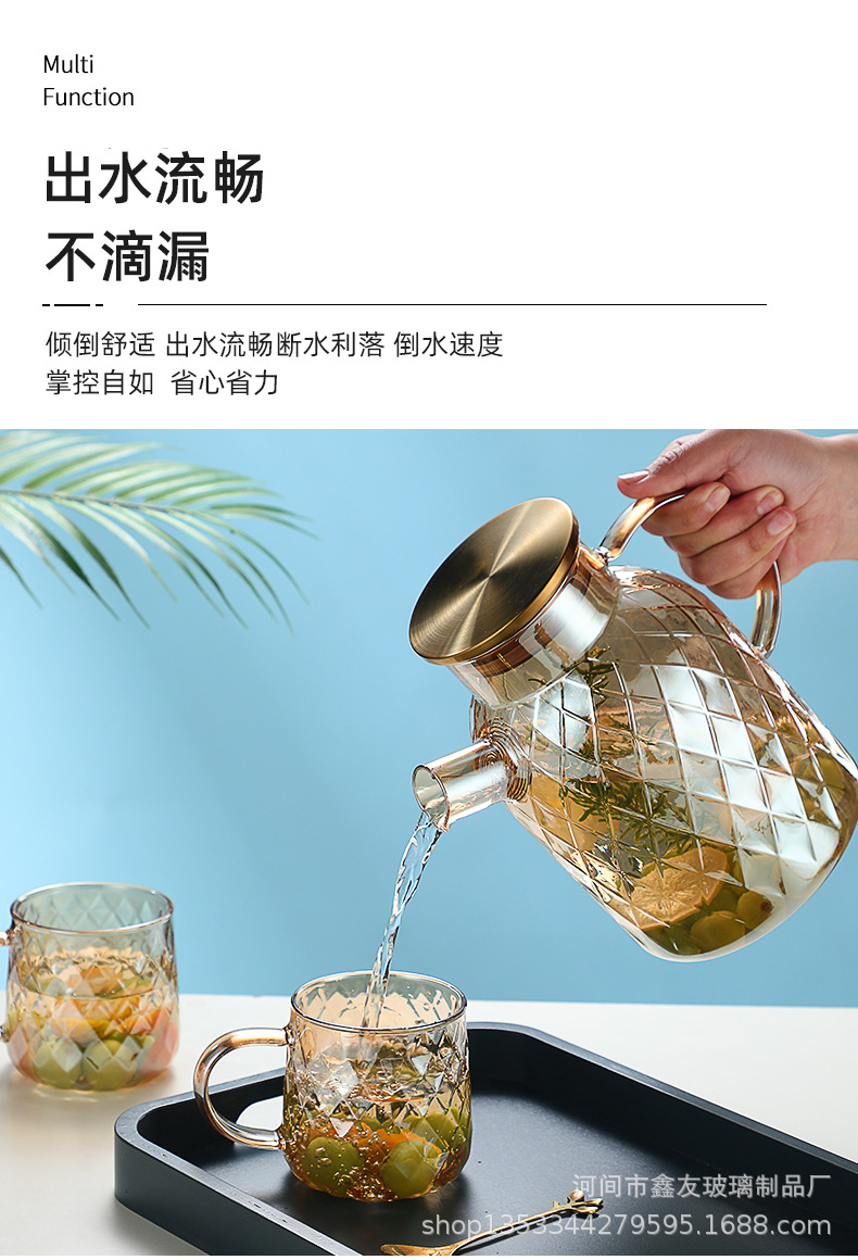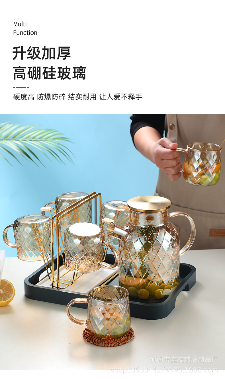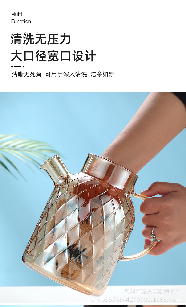 批发高硼玻璃耐热琥珀色冷水壶玻璃家用凉白开水杯茶壶套装扎壶大
