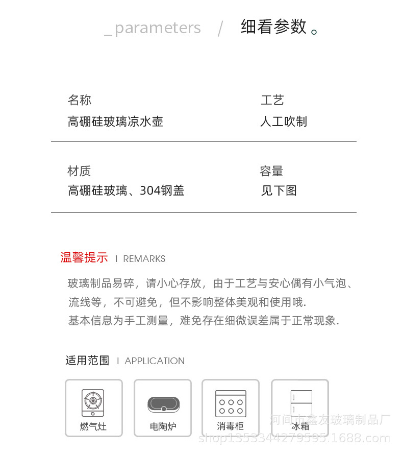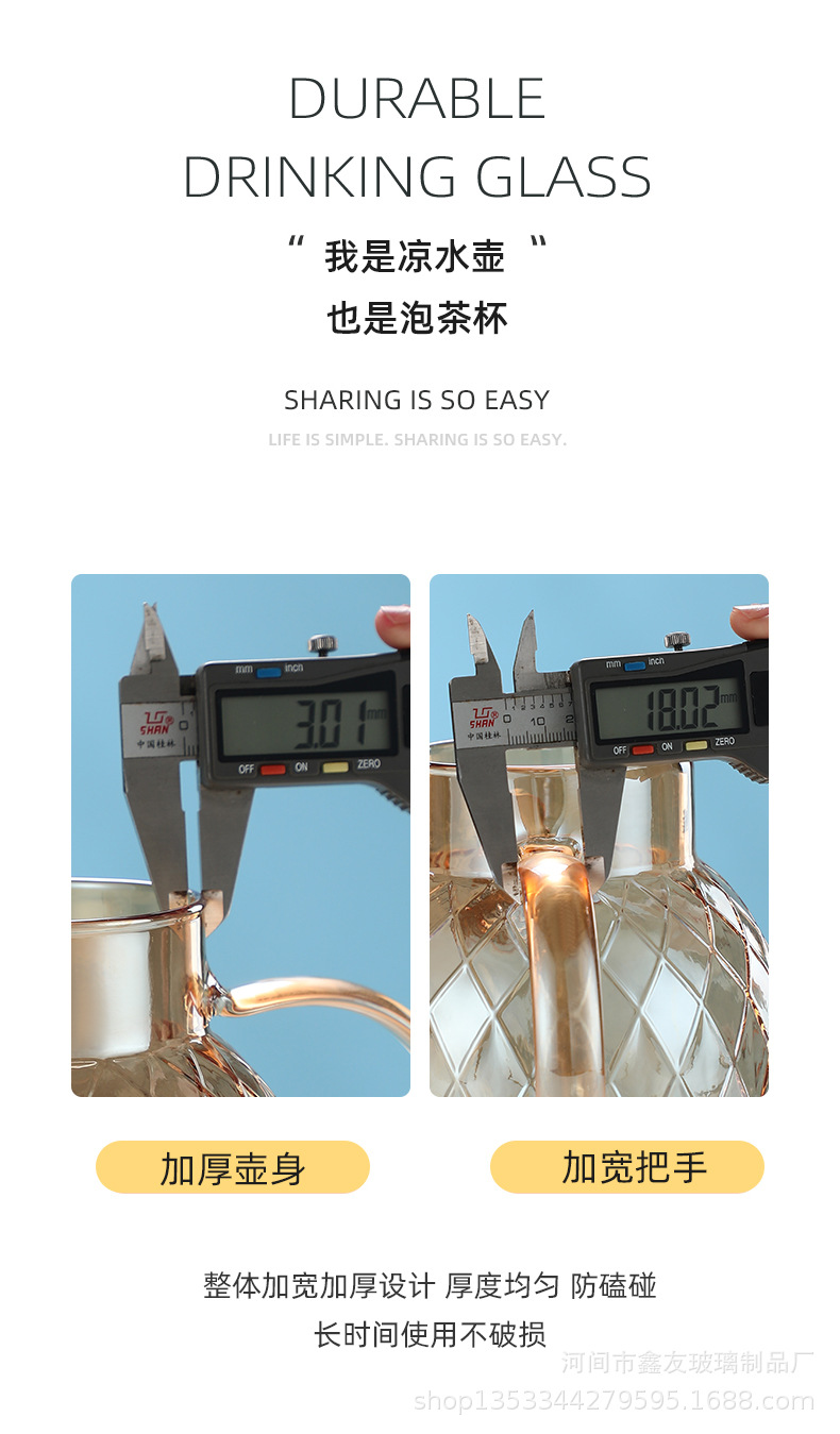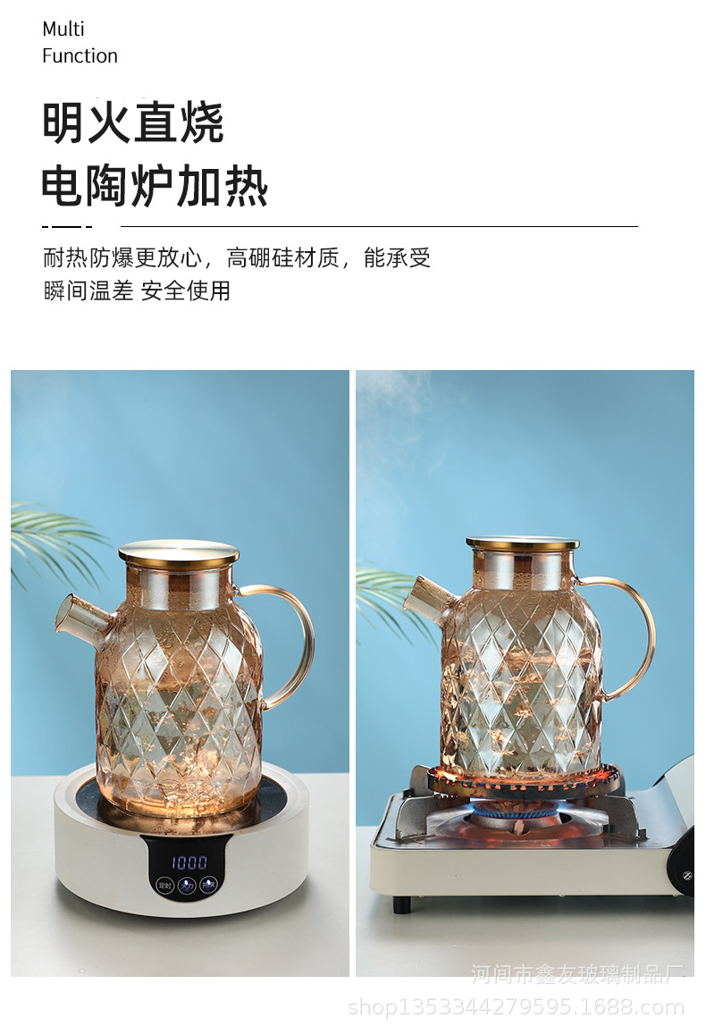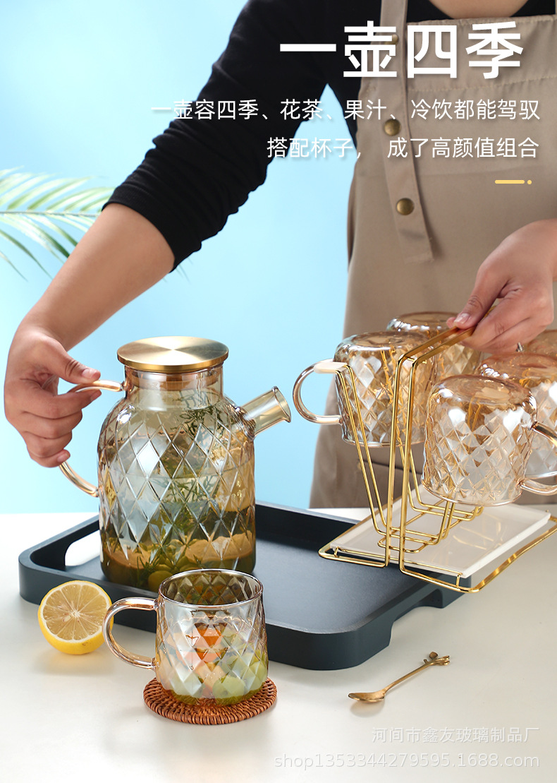批发高硼玻璃耐热琥珀色冷水壶玻璃家用凉白开水杯茶壶套装扎壶大