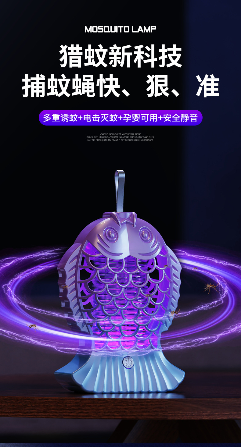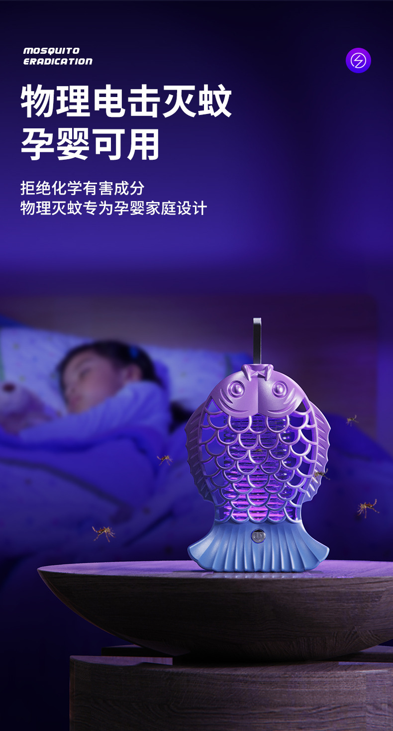 2023新款光触媒电击灭蚊灯家用宿舍桌面驱蚊诱蚊USB充电便携