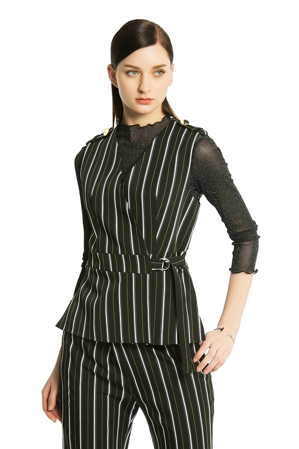 OCTAVIA 绿色不规则条纹衬衣 7067