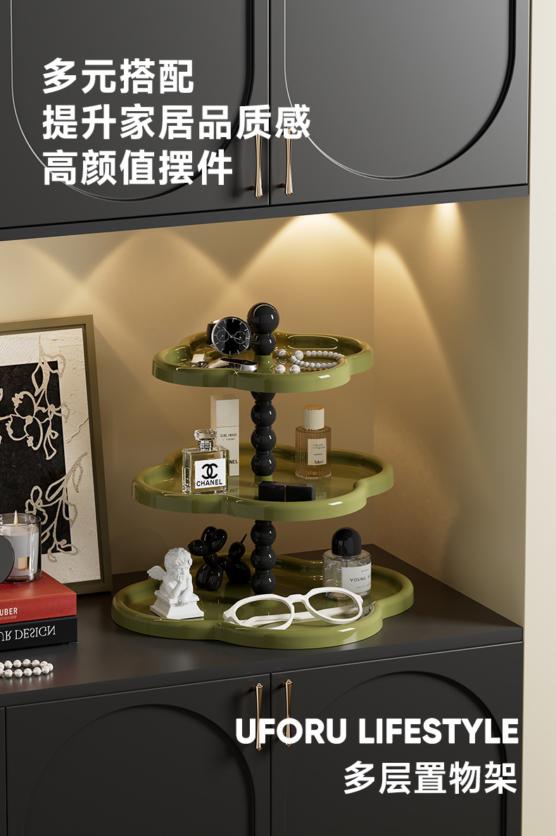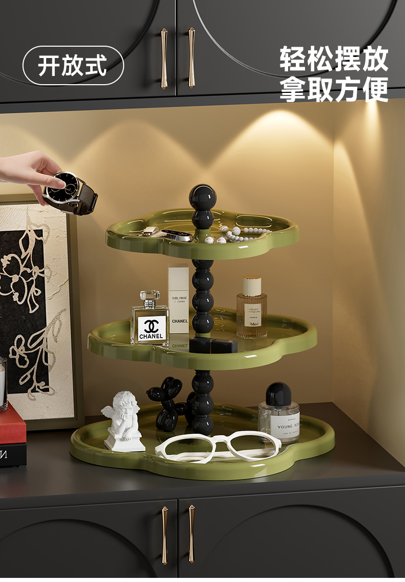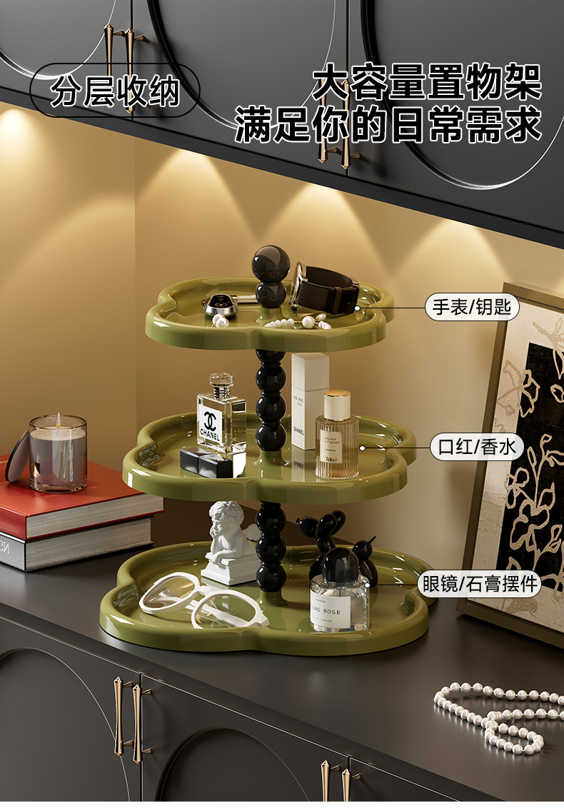 复古首饰置物架 ✨四叶草多层收纳架,甜品零食首饰全搞定!桌面秒变精致展示区💎水果盘甜品展示架 桌面大容量零食四叶草摆件收纳架