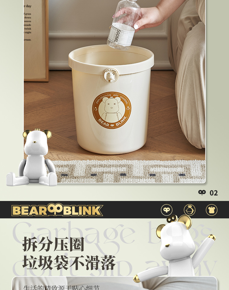 「两款可选!ins奶油风」垃圾桶居家日用颜值客厅卧室卫生间大号开口式透明无盖垃圾篓
