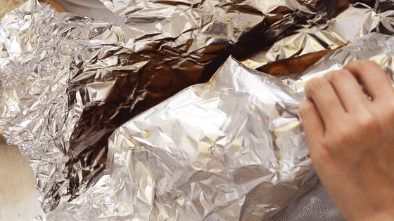 再用锡纸密封包好,与烤鸡相比