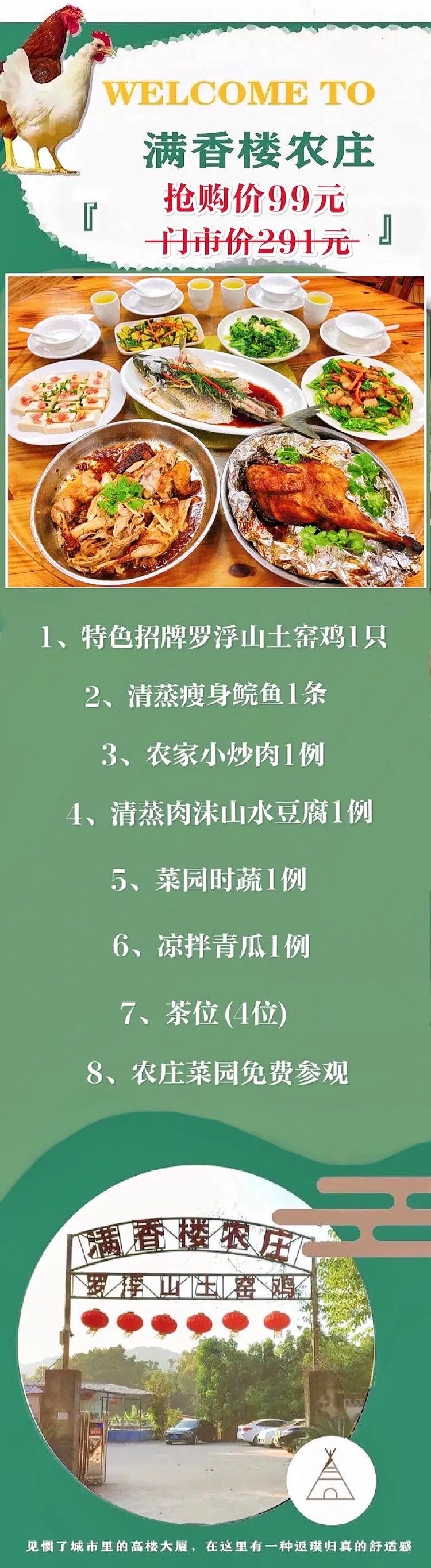 抢购截止日期6月18 【天河智慧城】返璞归真的宝藏农庄,每一样都是地道农家菜!¥99抢价值¥318 「满香楼农庄」4人餐=罗浮山土窑鸡+清蒸瘦身鲩鱼等