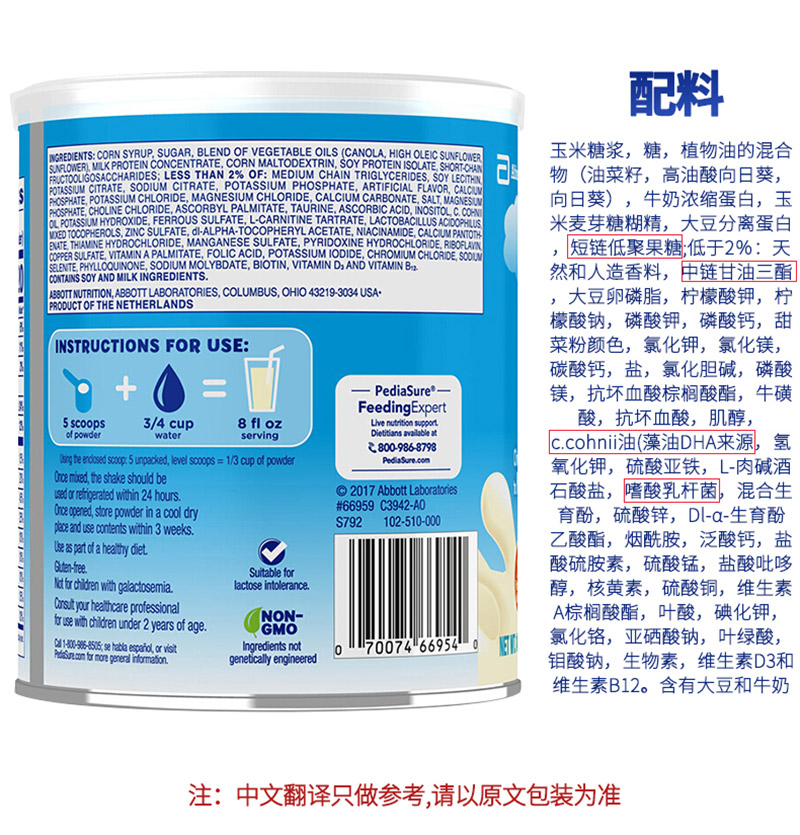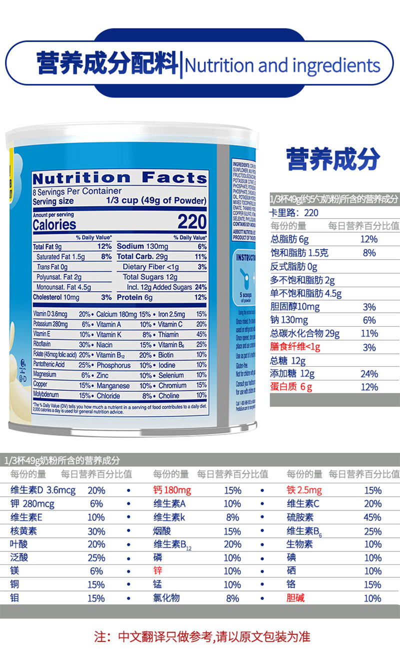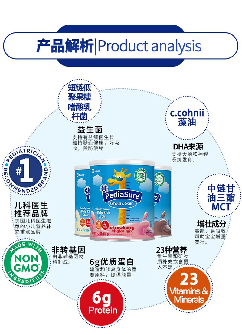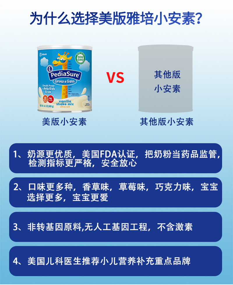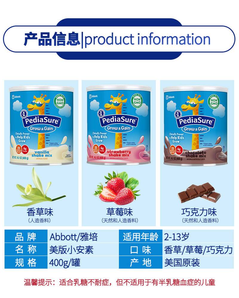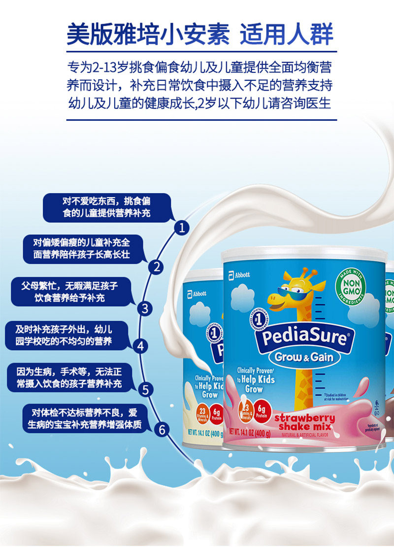美国雅培 儿童成长小安素非转基因婴幼儿营养粉400g(1-10岁)