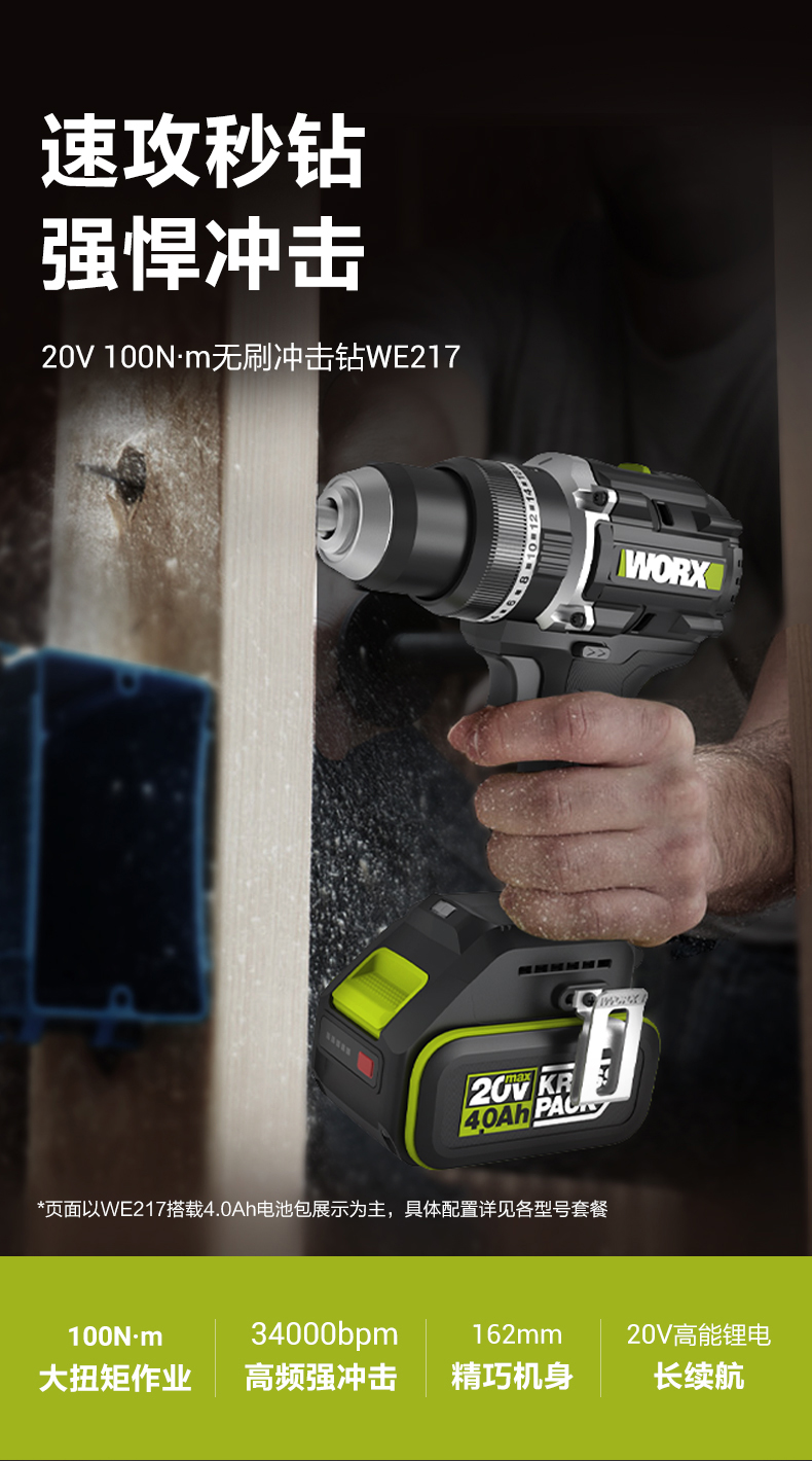 威克士20V油压起子机WU298D手电钻电批无刷冲击起子机电动螺丝刀