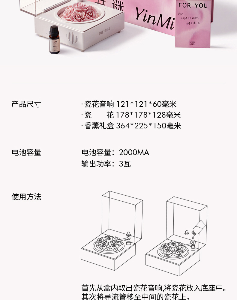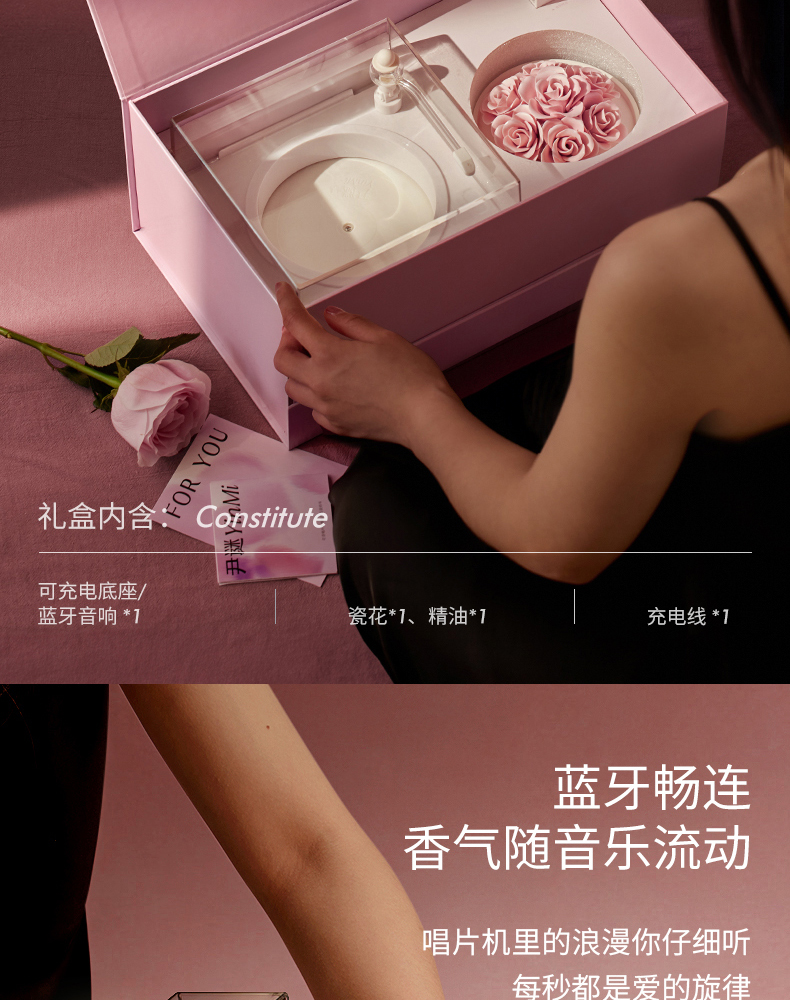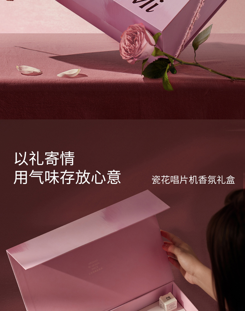 520礼物香薰瓷花唱片机摆件情人节送女朋友生日新婚乔迁礼