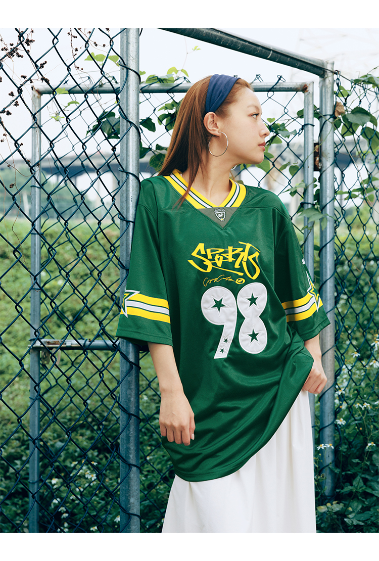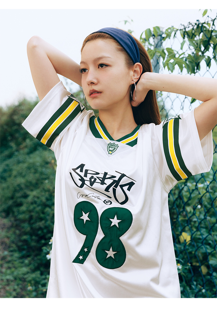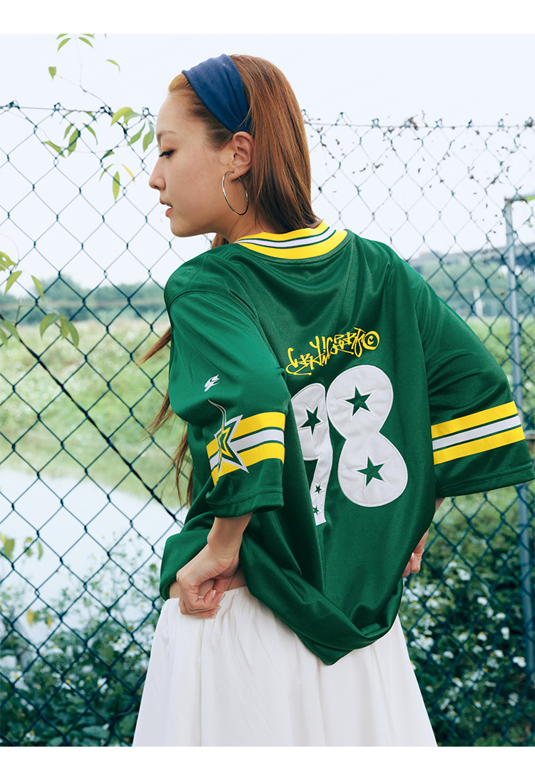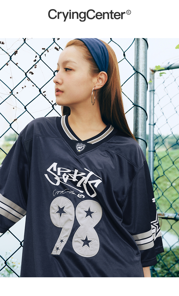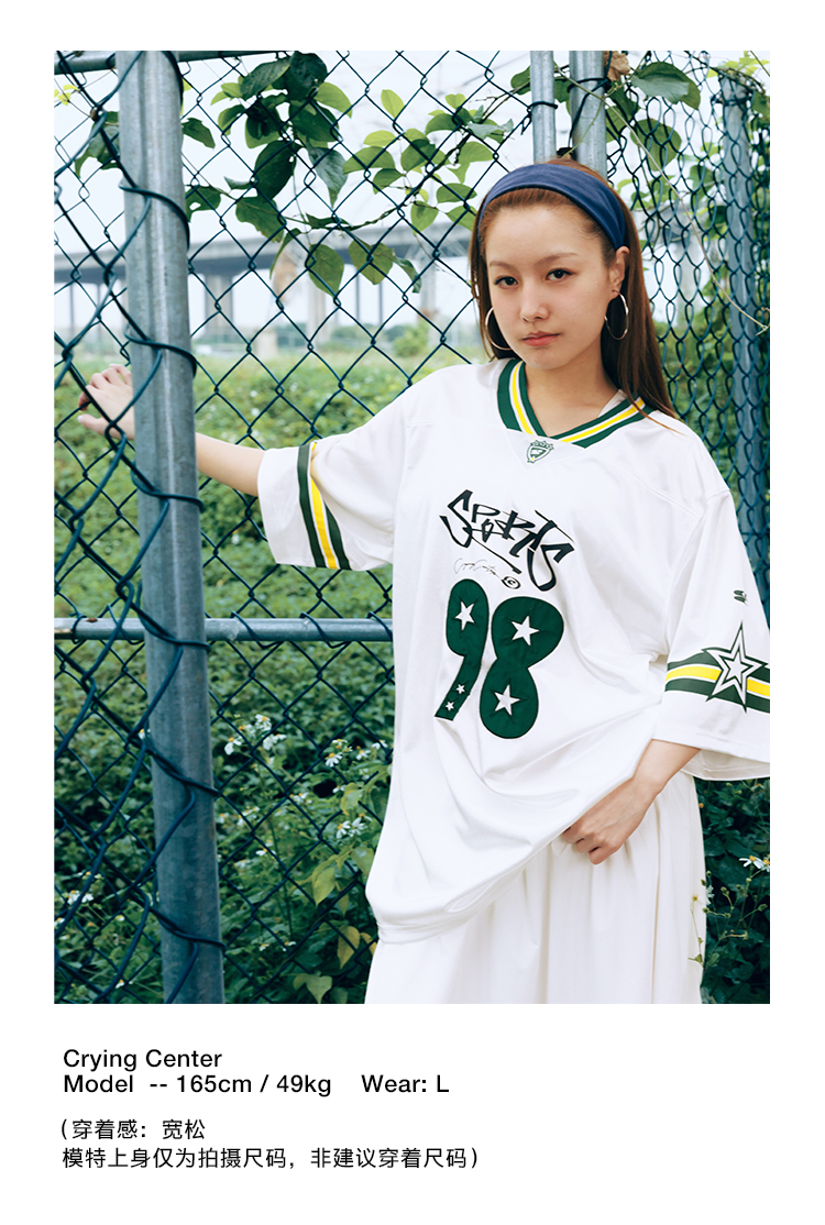 CryingCenter 涂鸦字星星数字98光泽复古球服短袖宽松 哭喊中心