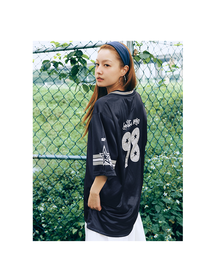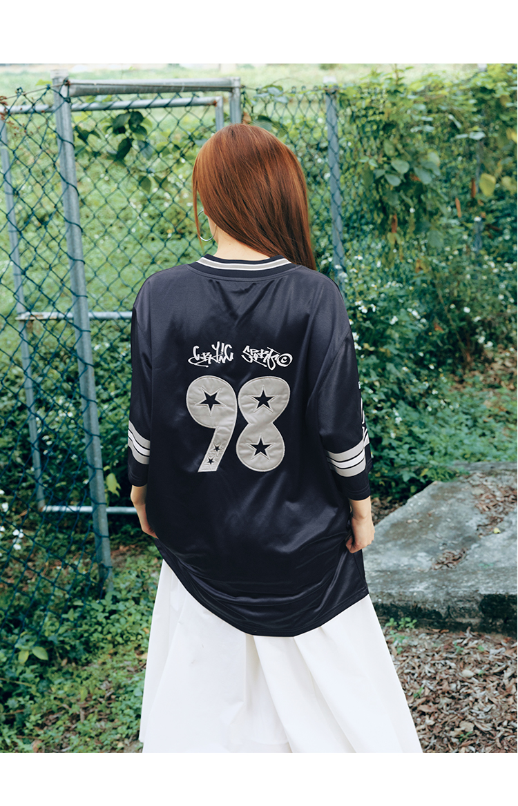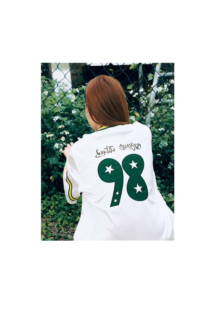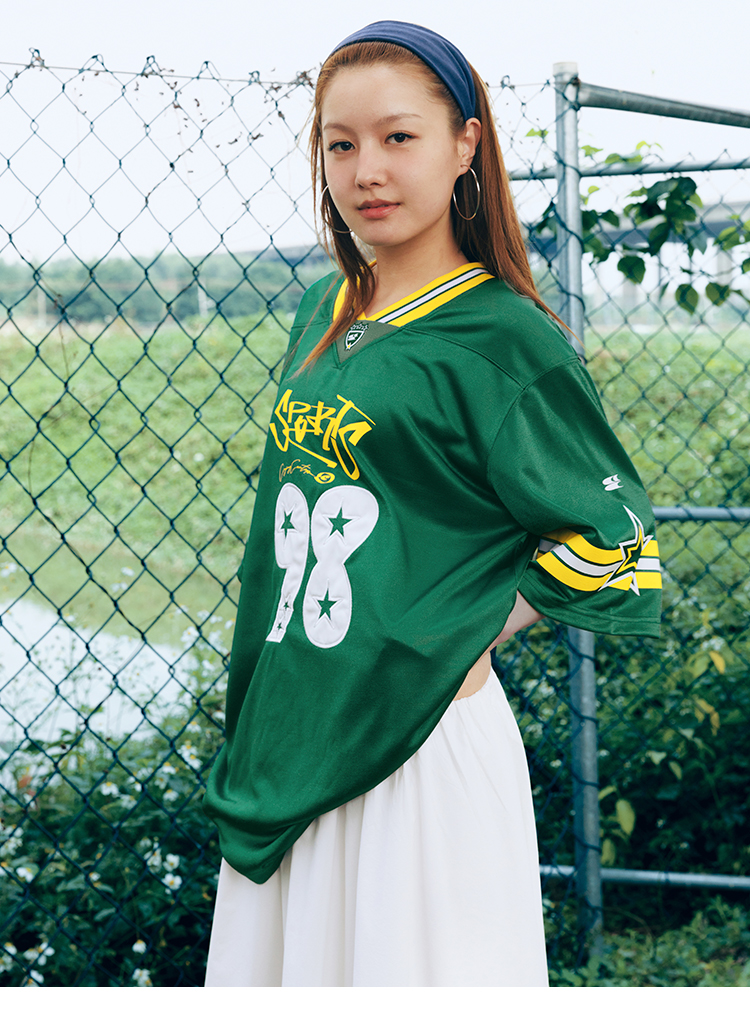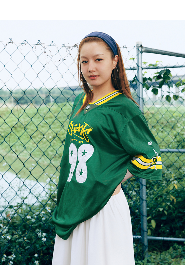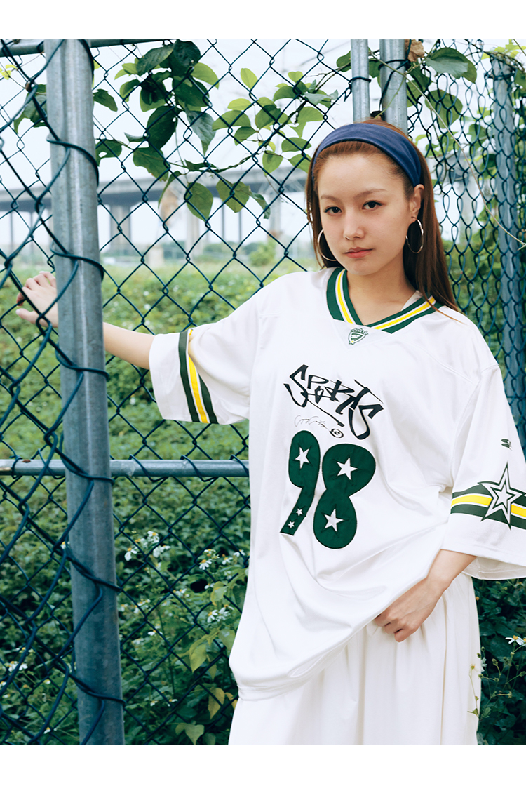 CryingCenter 涂鸦字星星数字98光泽复古球服短袖宽松 哭喊中心
