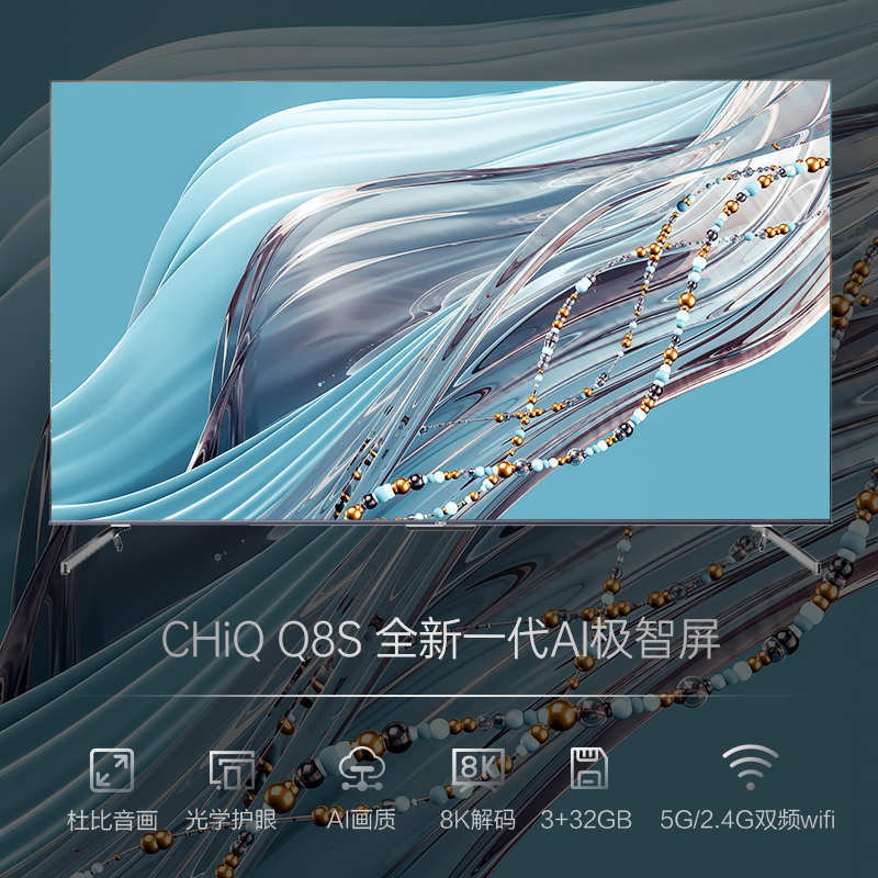 长虹CHiQ 75Q8S 75英寸 3+32GB 8K解码 MEMC 液晶LED智能电视机