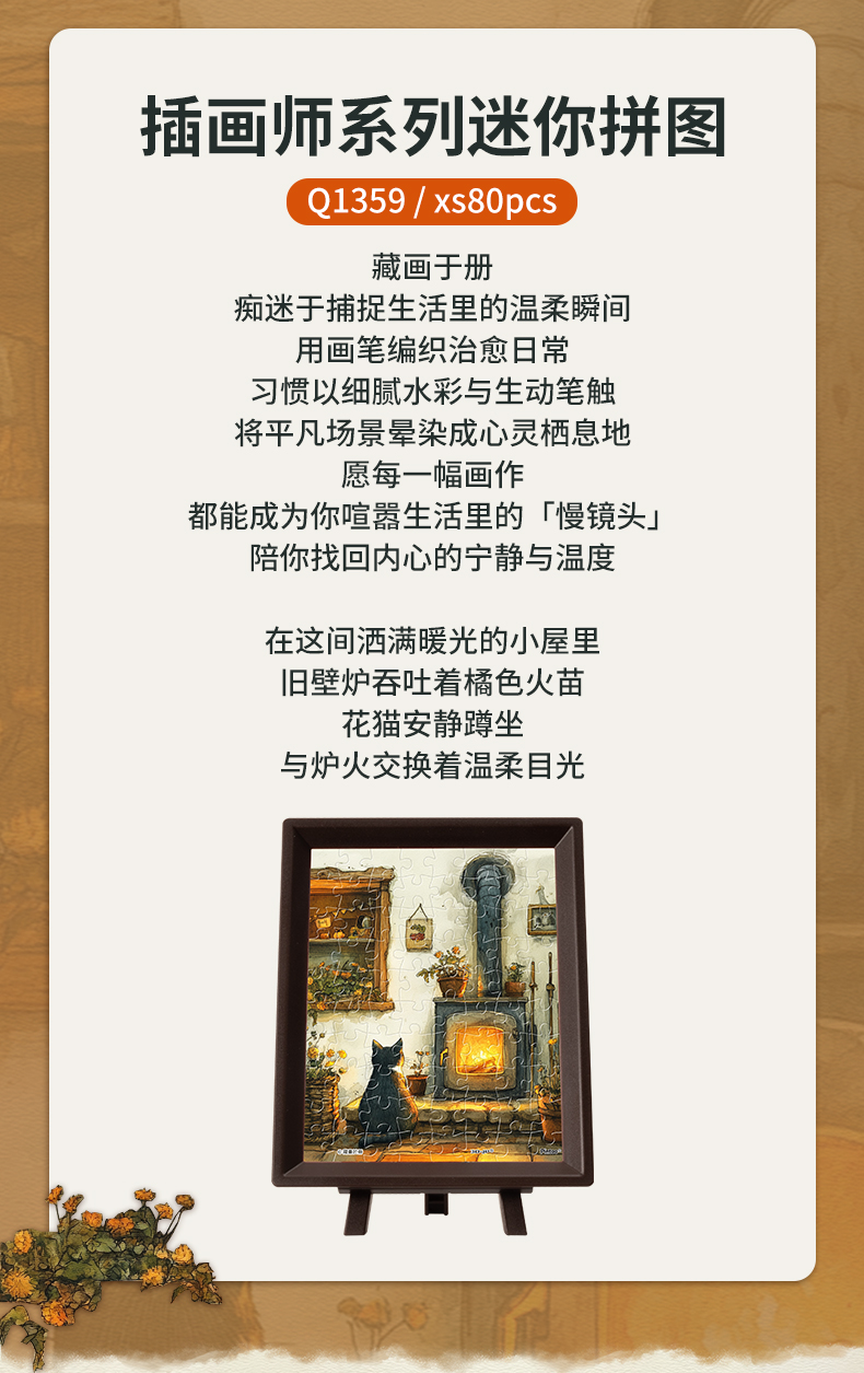 80片 迷你拼图 Q1359 藏画于册-炉火边的时光
