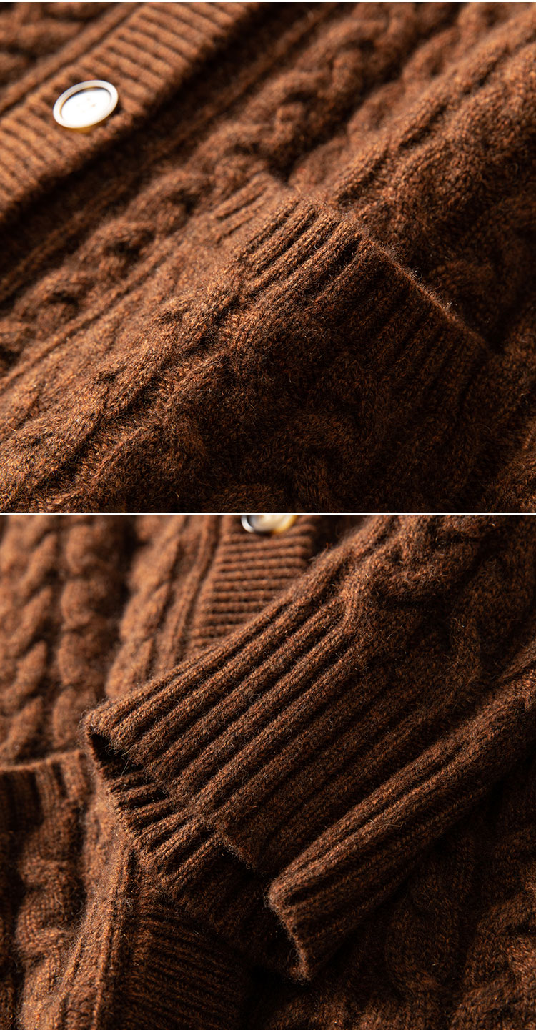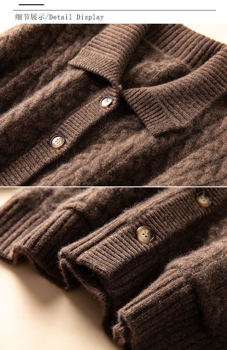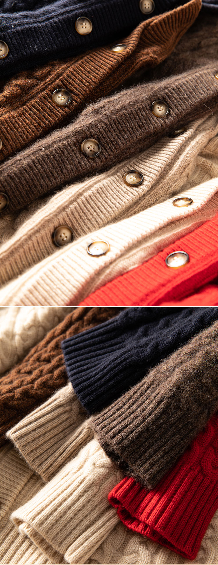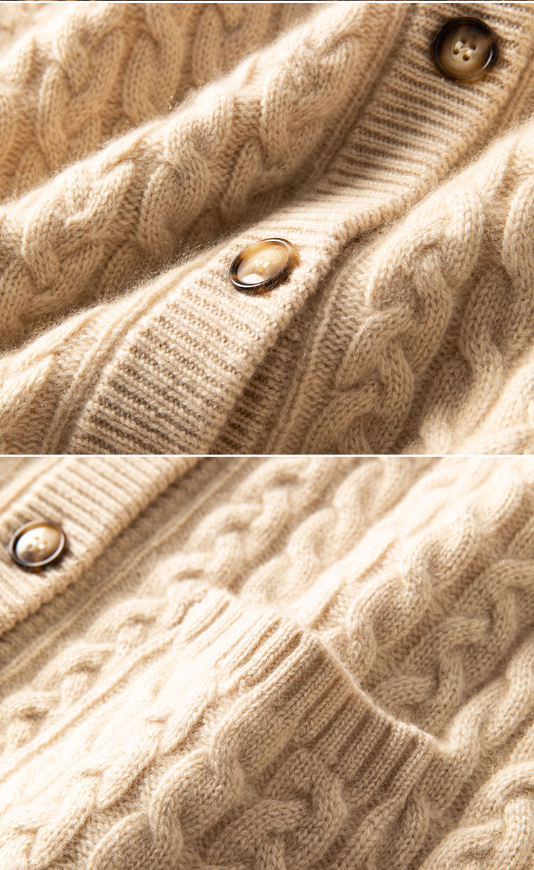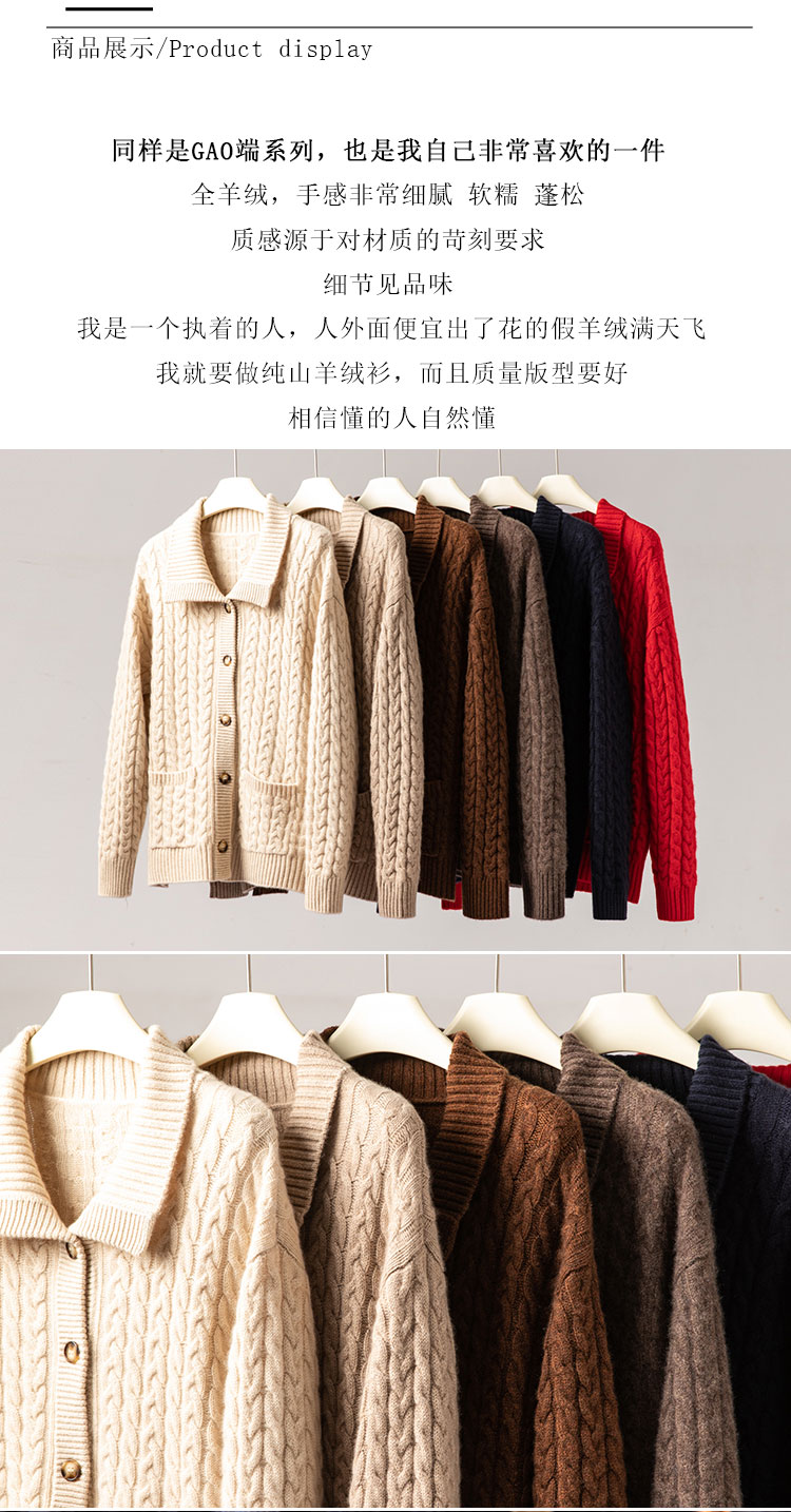 出自名门!精髓~重磅加厚V领山羊绒开衫女纯羊绒毛衣针织开衫外套