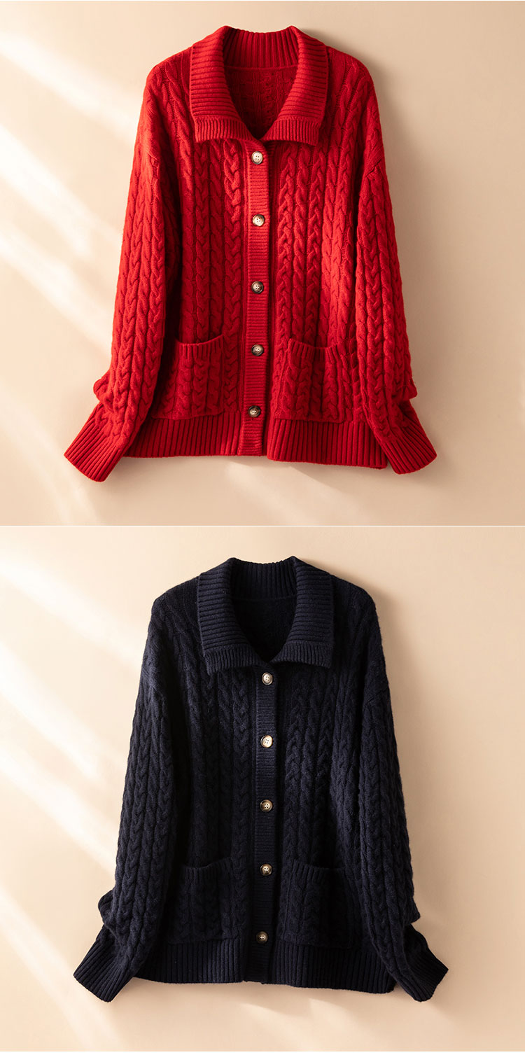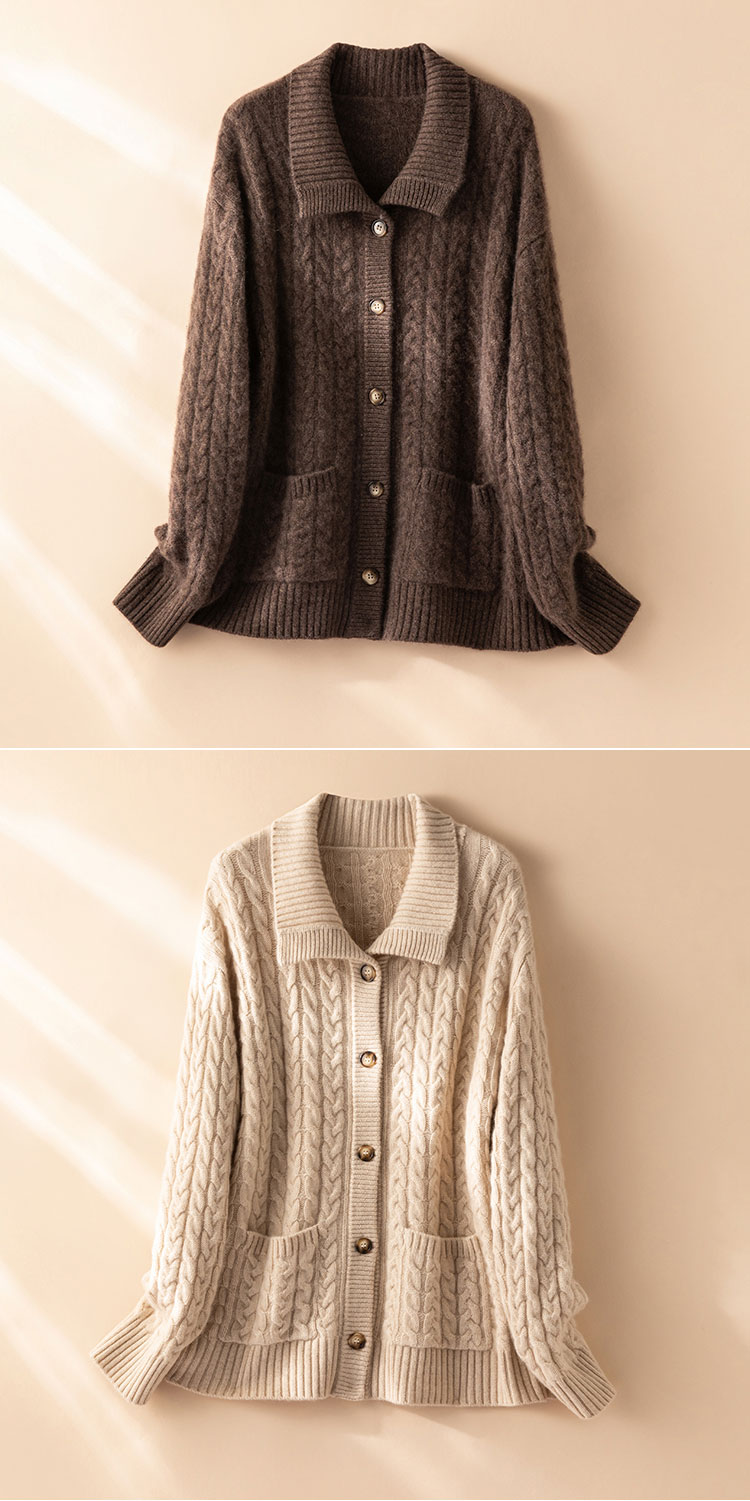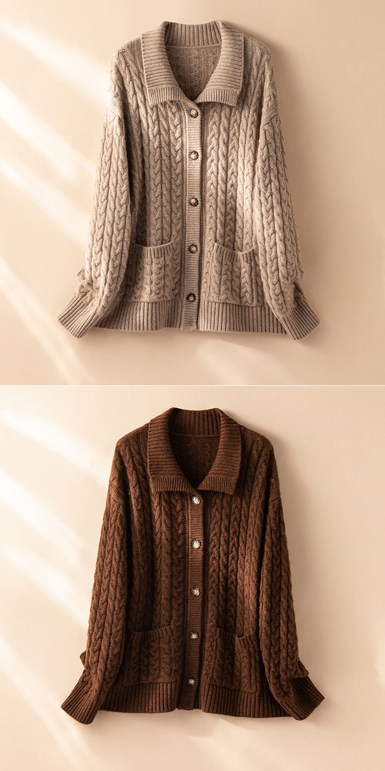 重磅保暖王~康赛妮100纯山羊绒开衫女立领毛衣加厚外套