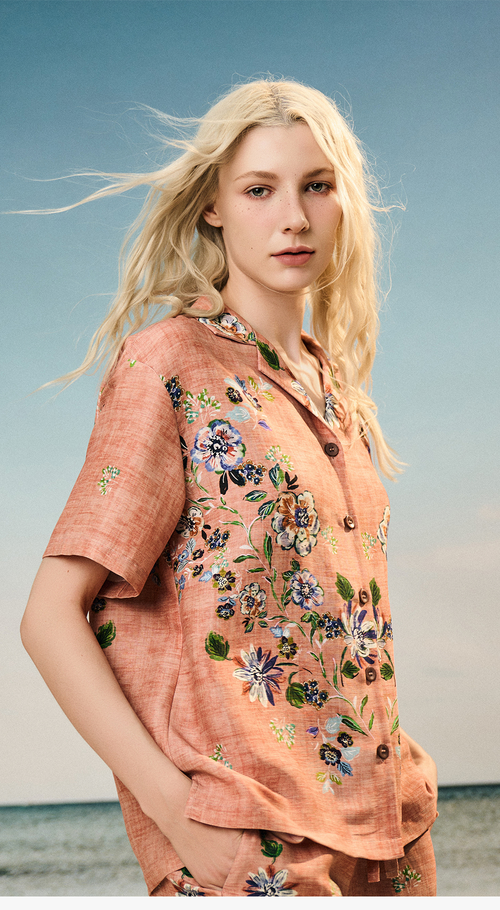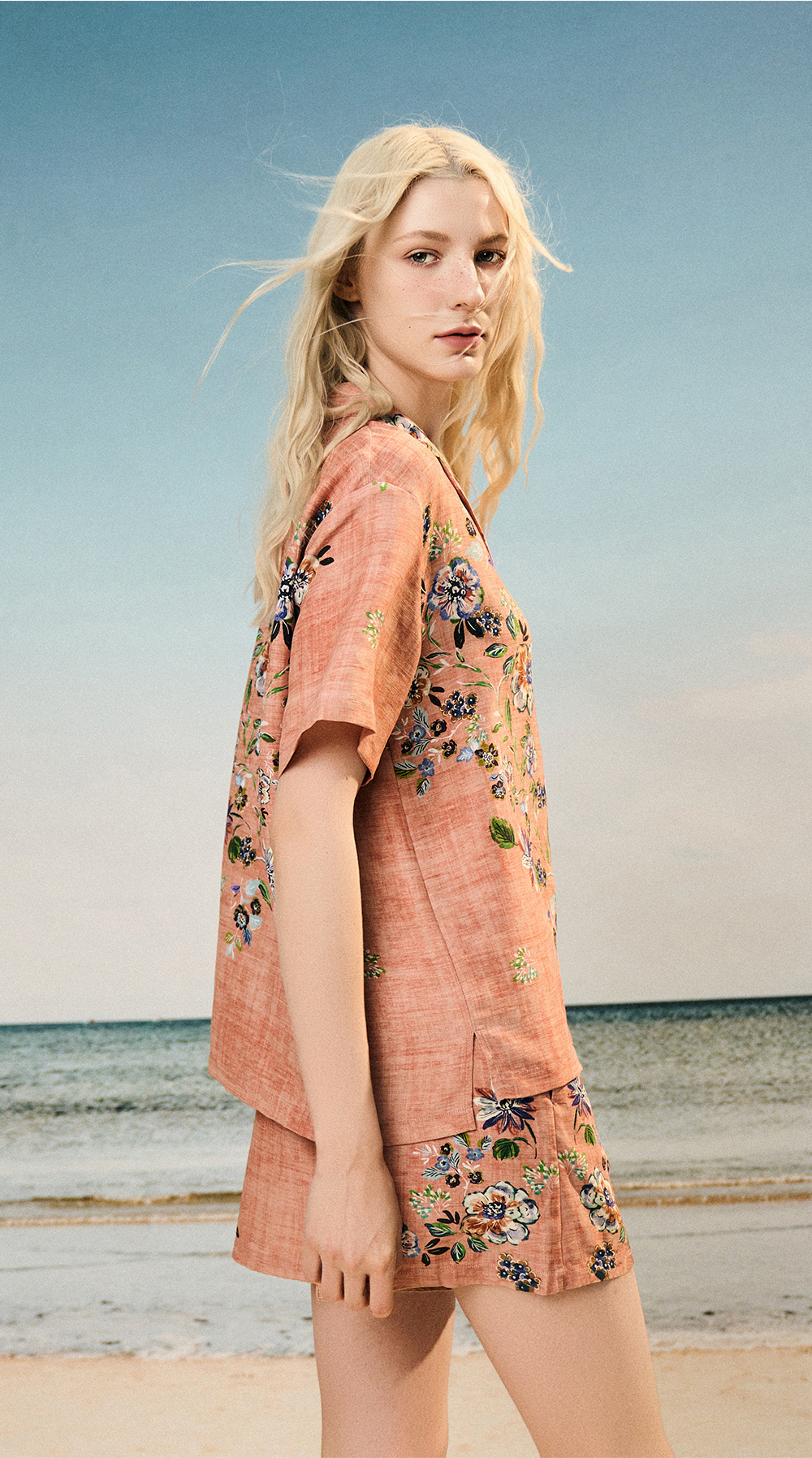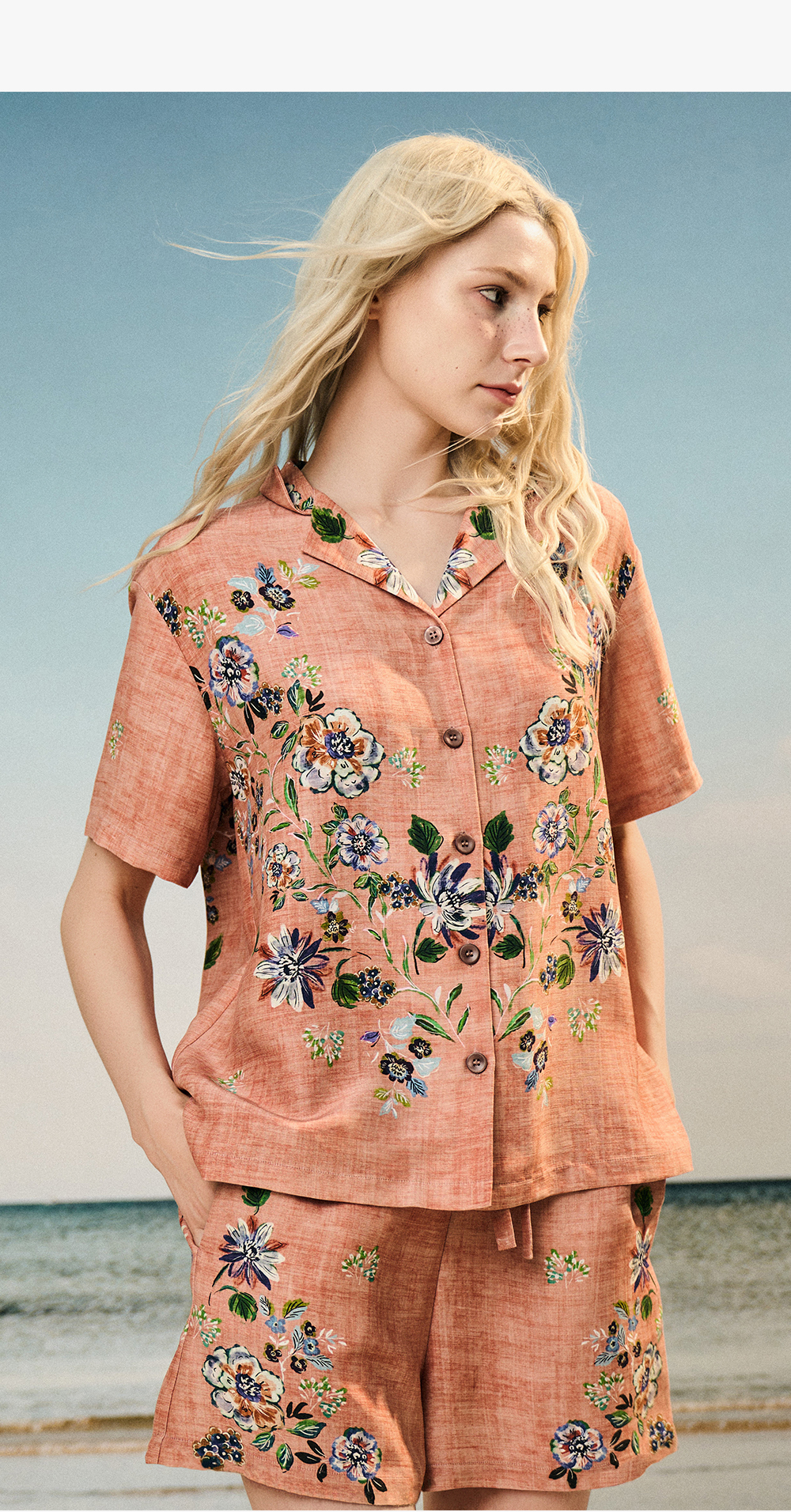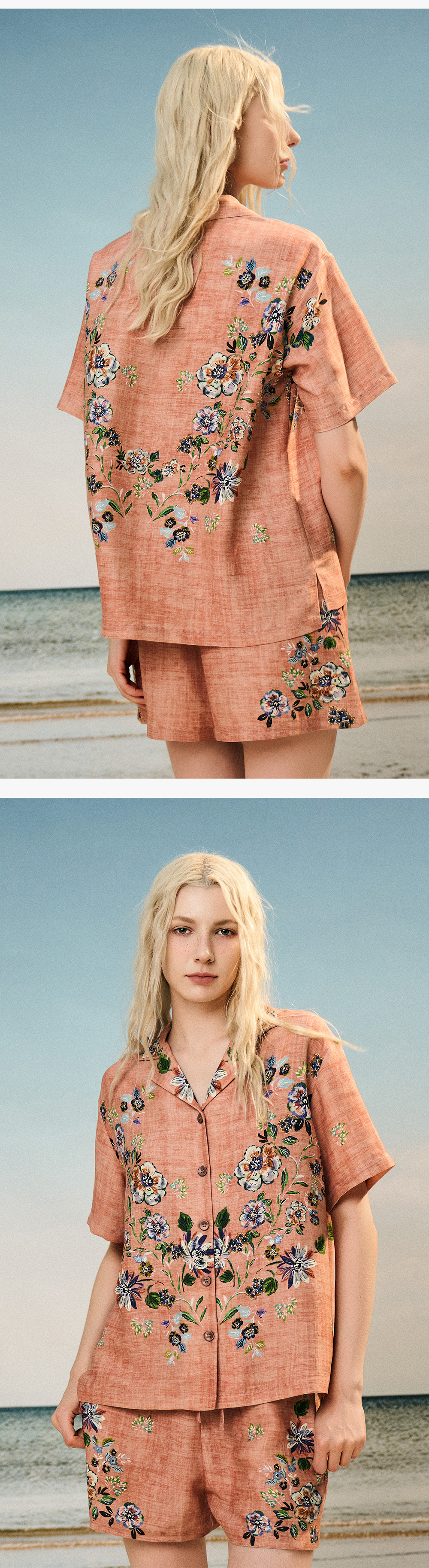 Solo seta女士海边度假风短袖短裤丝麻套装印花睡衣2025年秋季