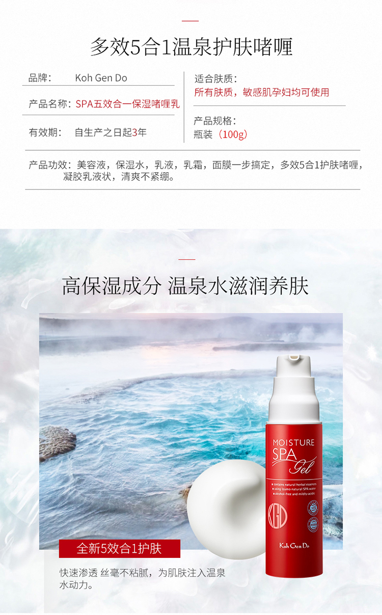 KohGenDo 江原道 SPA温泉五效合一保湿精华啫喱乳 100g(新款)