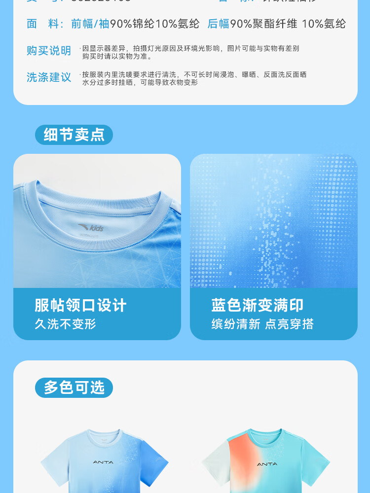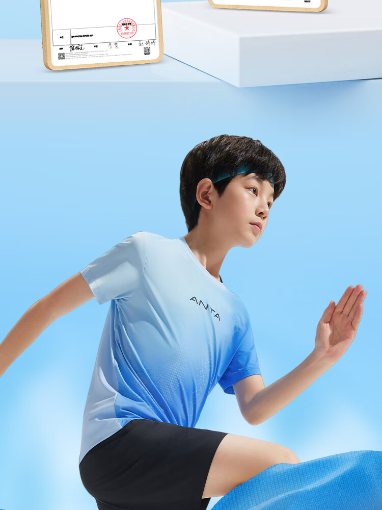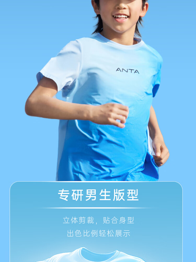 安踏儿童男大童短袖T恤衫2025夏透气舒适速干疾飞运动短T352525117