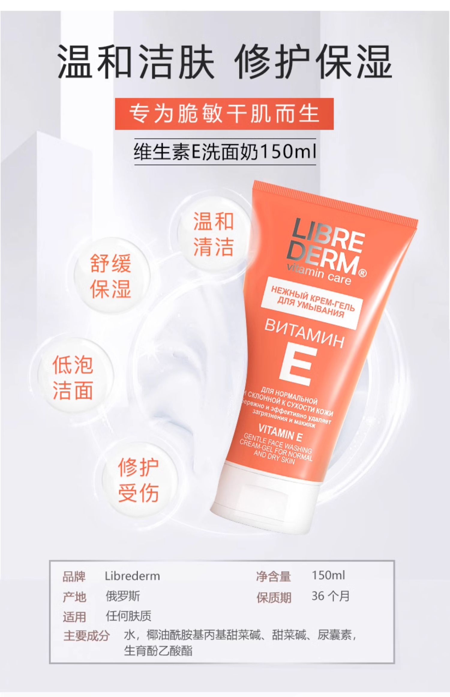【保税仓】Librederm妮蓓丹维生素E洁面150ml/支