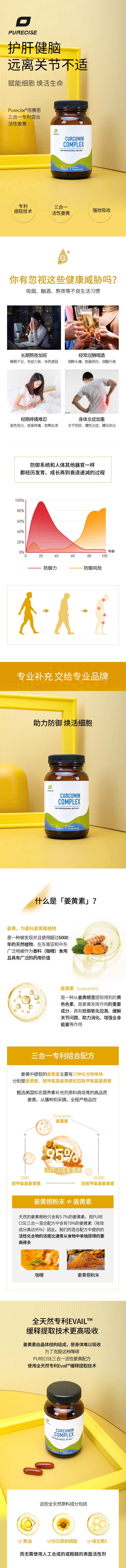 【65倍吸收率三合一缓释专利姜黄】 Curcumin Complex 60粒 单粒1g Evail®️缓释技术 65倍高吸收率专利姜黄素配方 肠道修复提升免疫 Purecise®️