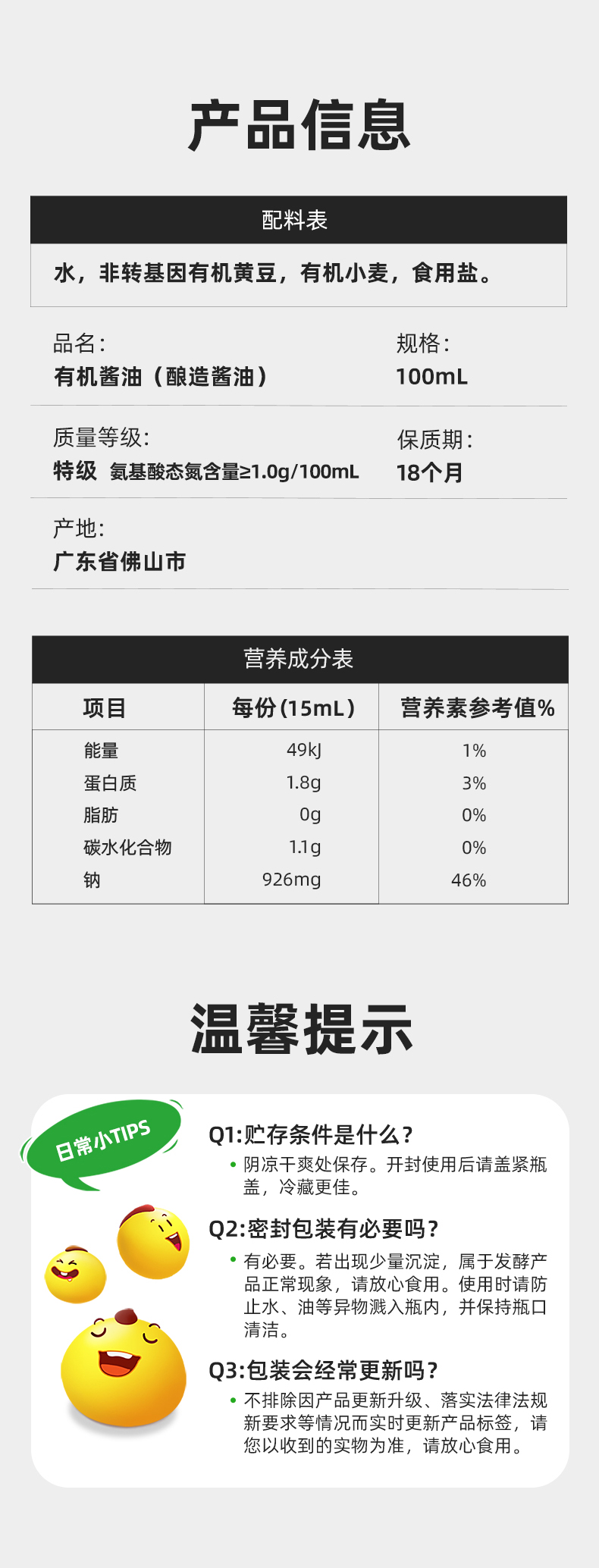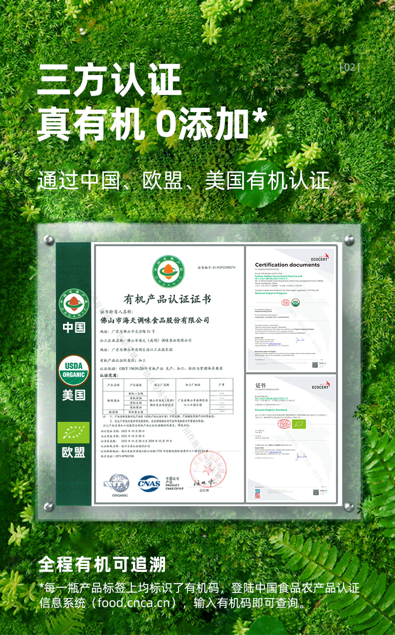 海天有机尝鲜装 有机酱油+有机蚝油鲜露+有机番茄沙司 有机认证可溯源