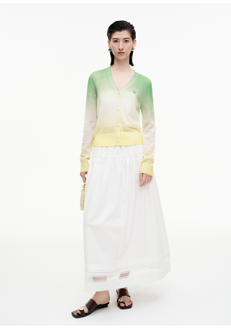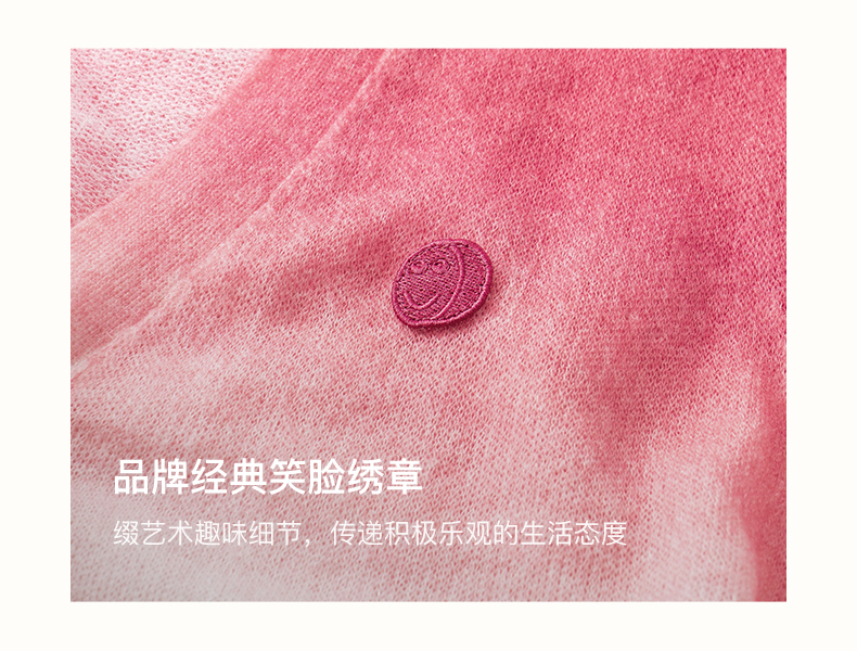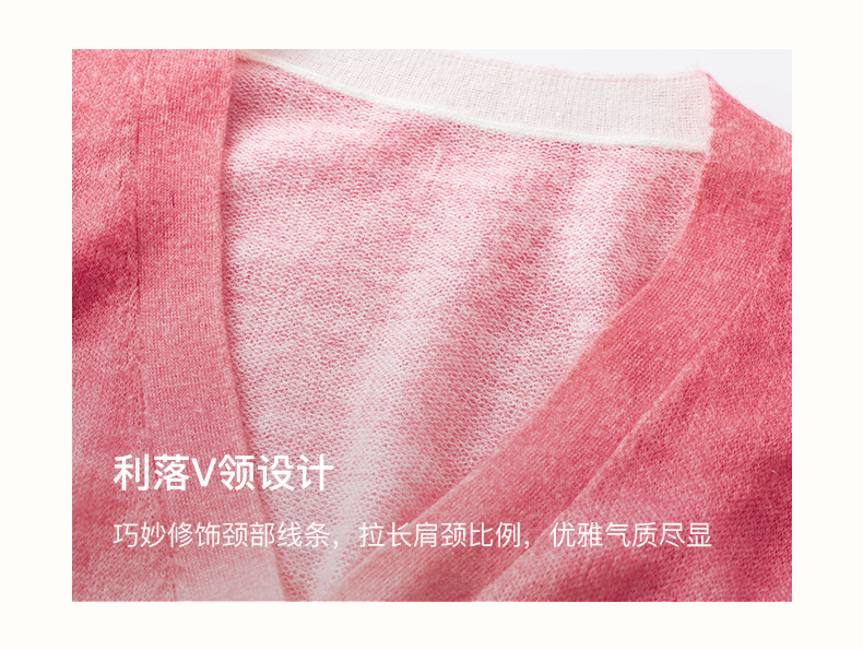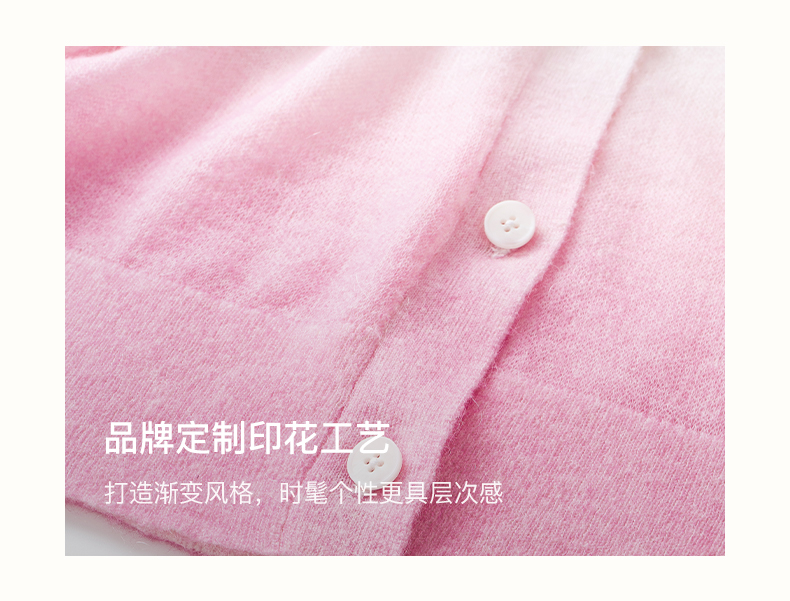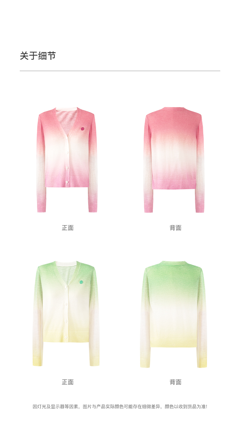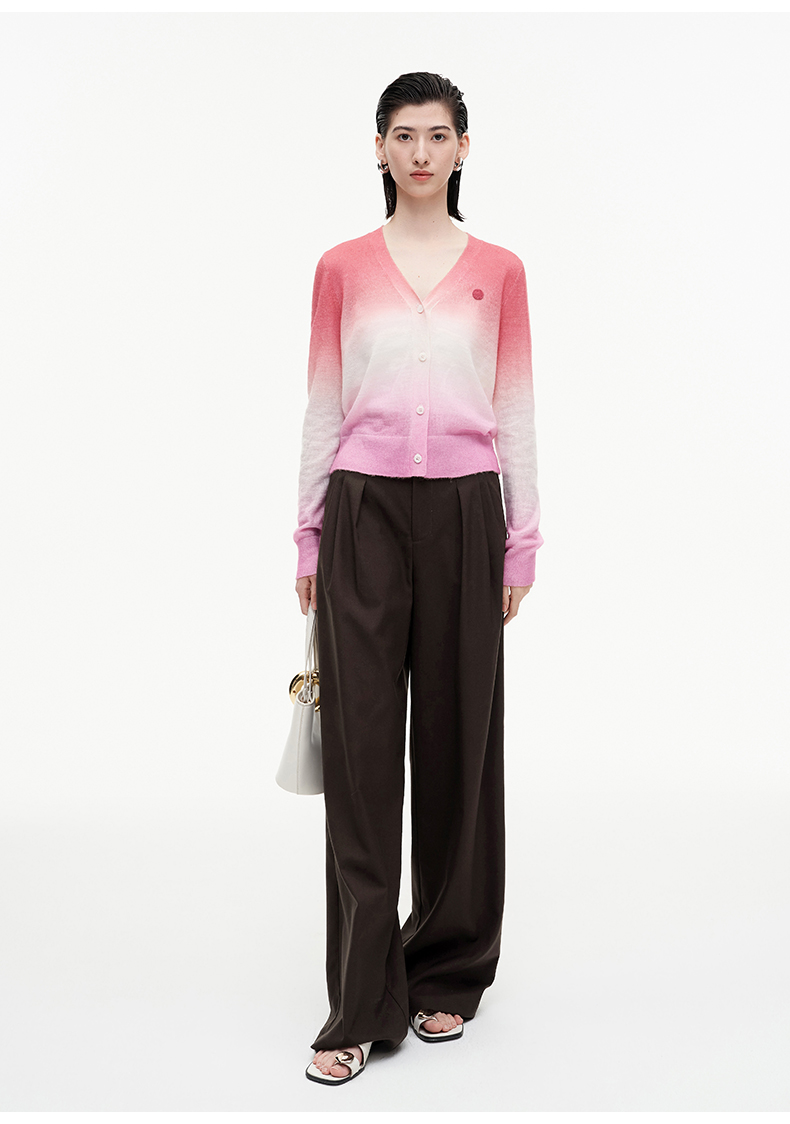 SELFWHO笑脸衣橱羊毛马海毛渐变撞色针织衫女2025秋新款V领短开衫