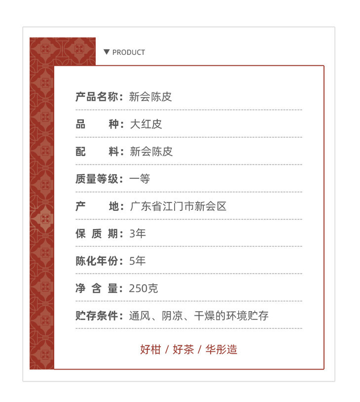 | 产品名称 | 华彤2018年南庚老树新会罐装陈皮250g |