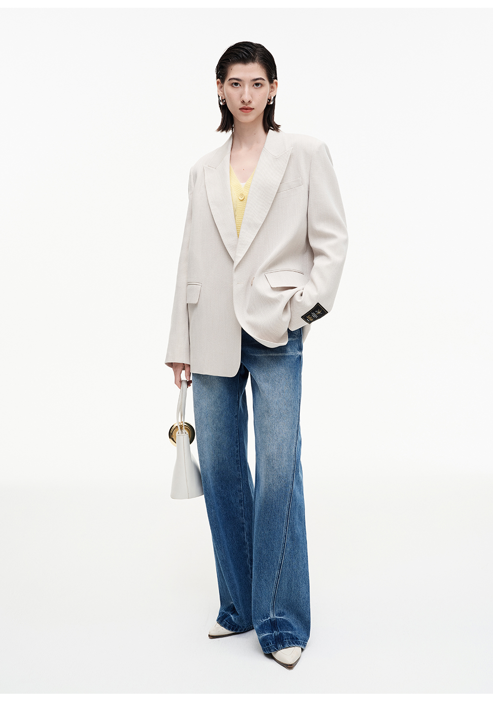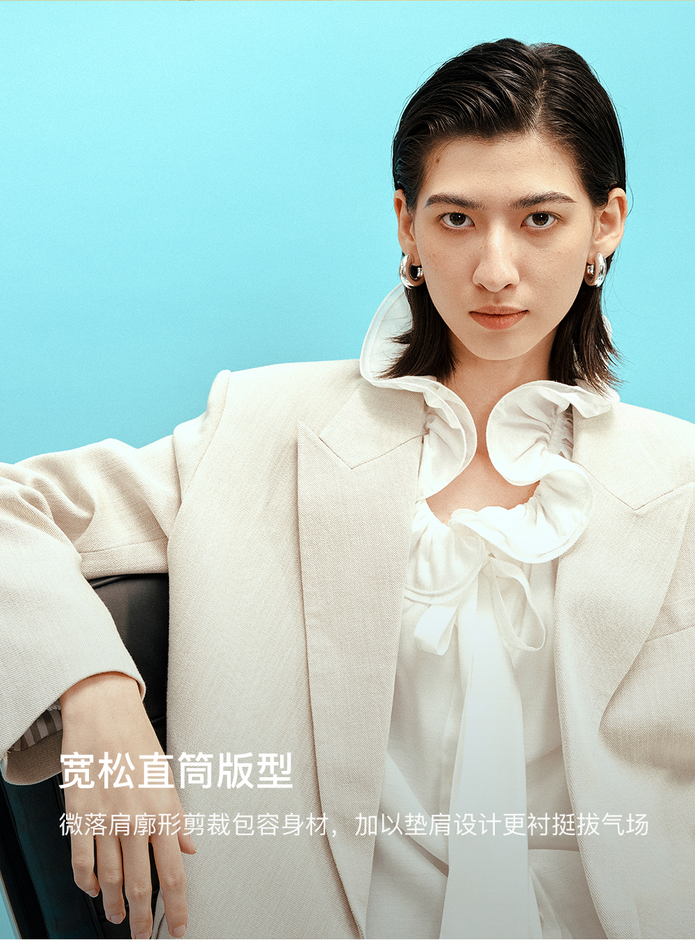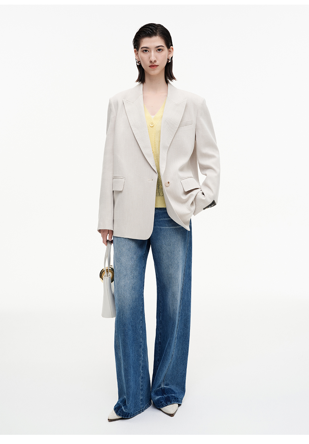 SELFWHO天丝醋酯混纺单排扣西装外套女2025秋季新款宽松垫肩西服