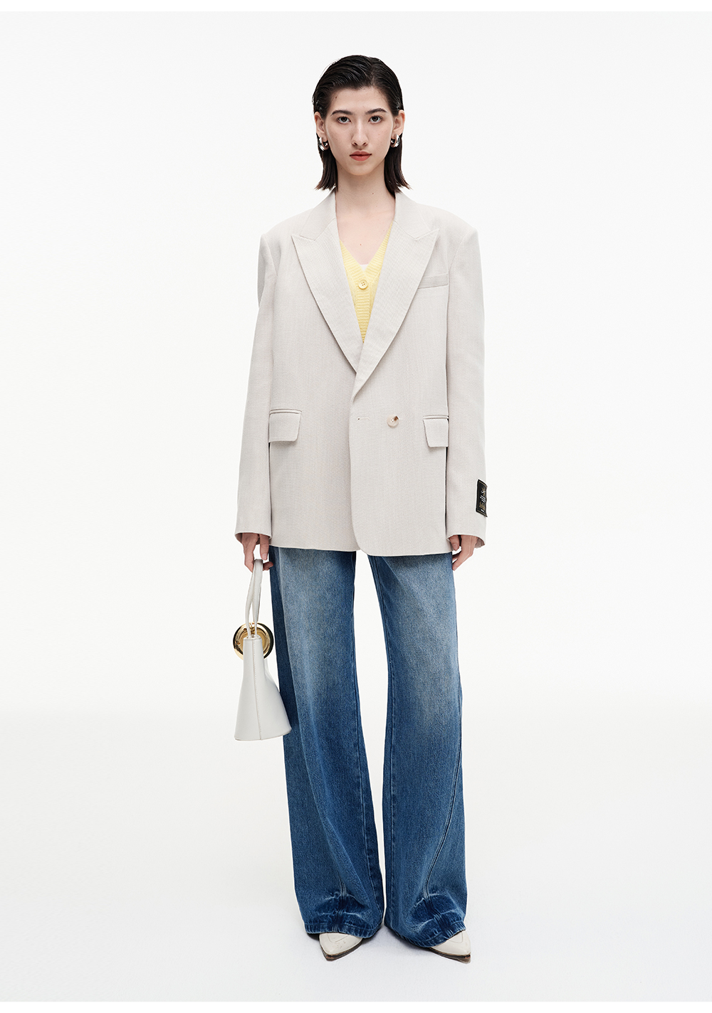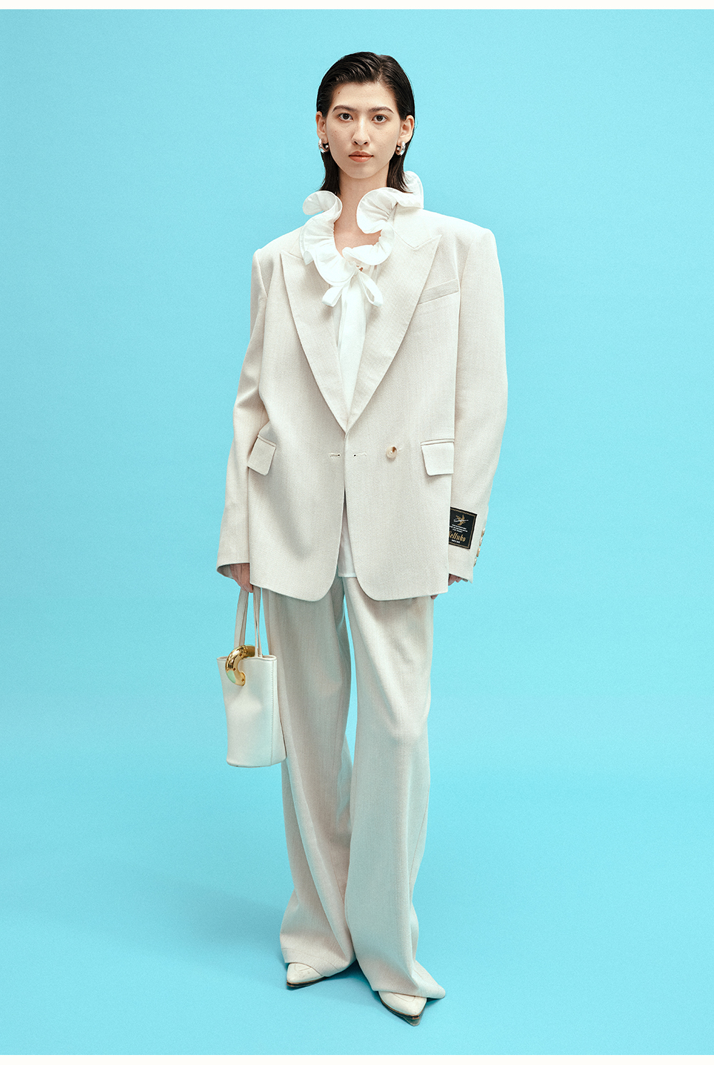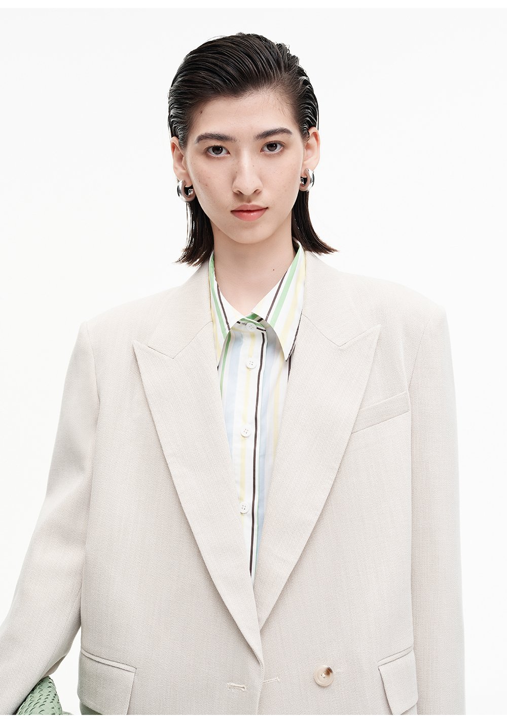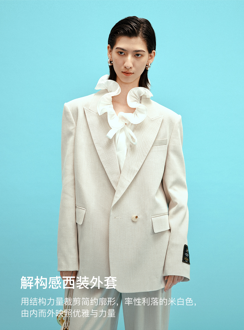SELFWHO天丝醋酯混纺单排扣西装外套女2025秋季新款宽松垫肩西服