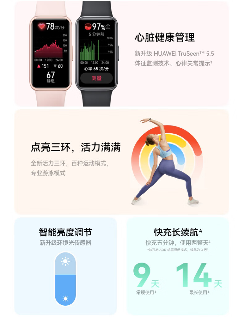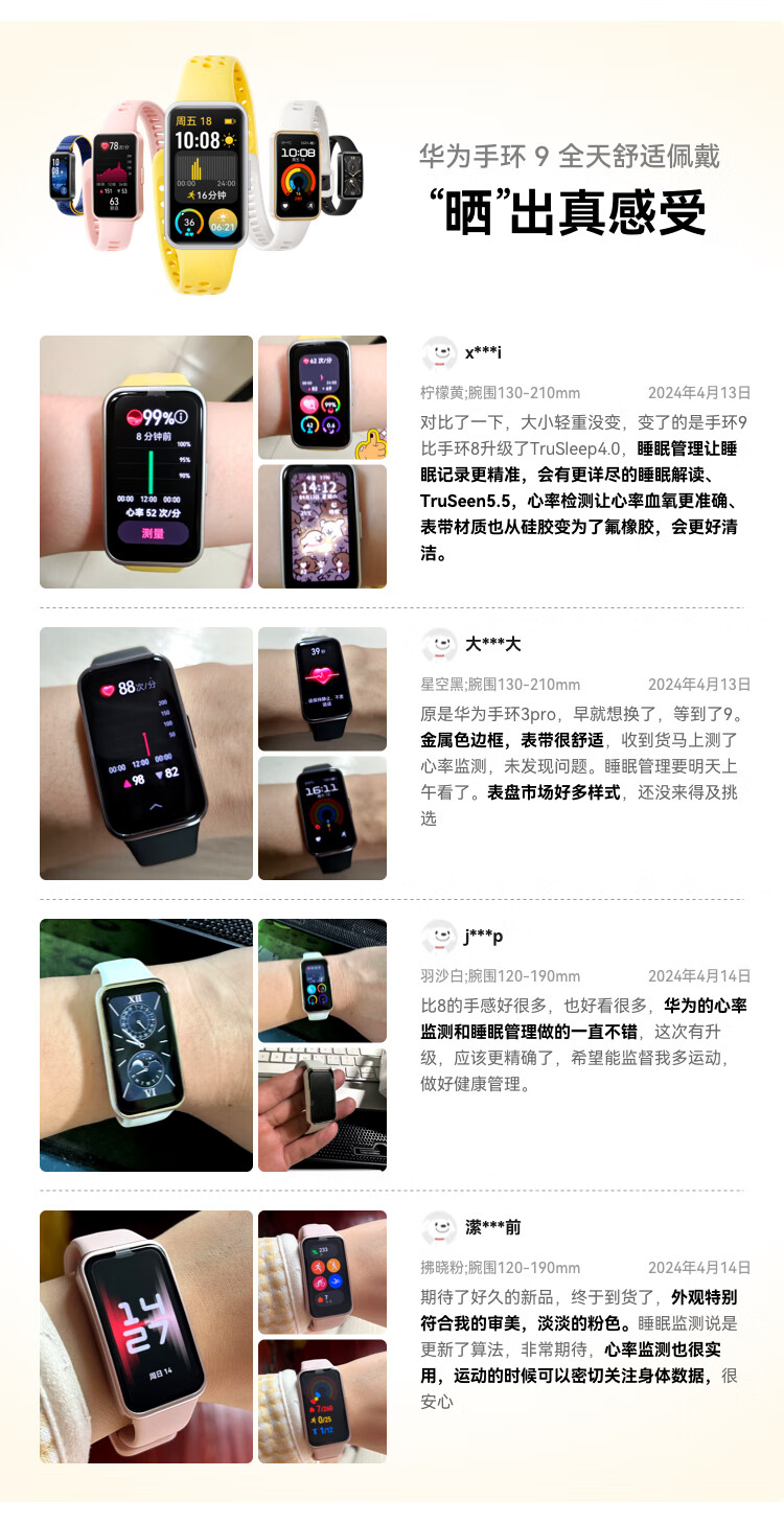 双11活动礼品:华为 手环9 标准版 智能手环 星空黑 轻薄舒适睡眠监测心律失常提示运动手环华为手表送男友送女友