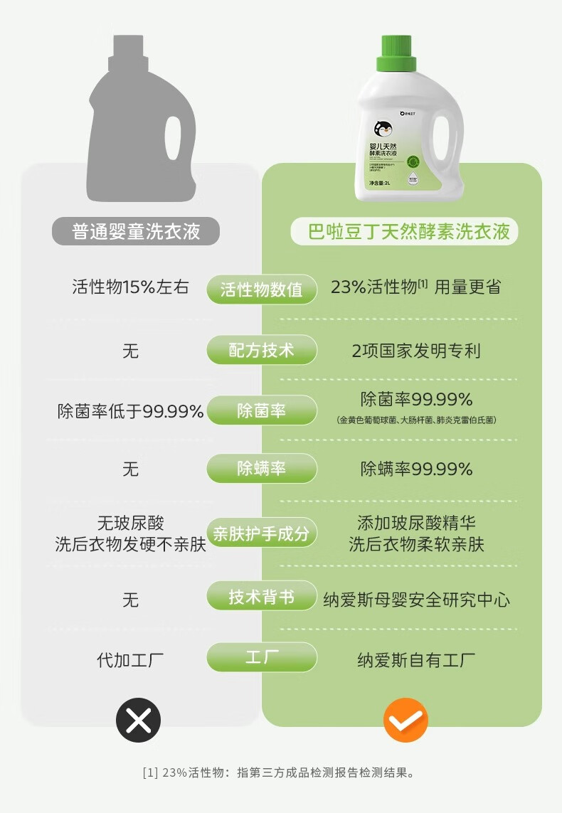 巴啦豆丁 婴儿天然酵素洗衣液 1L