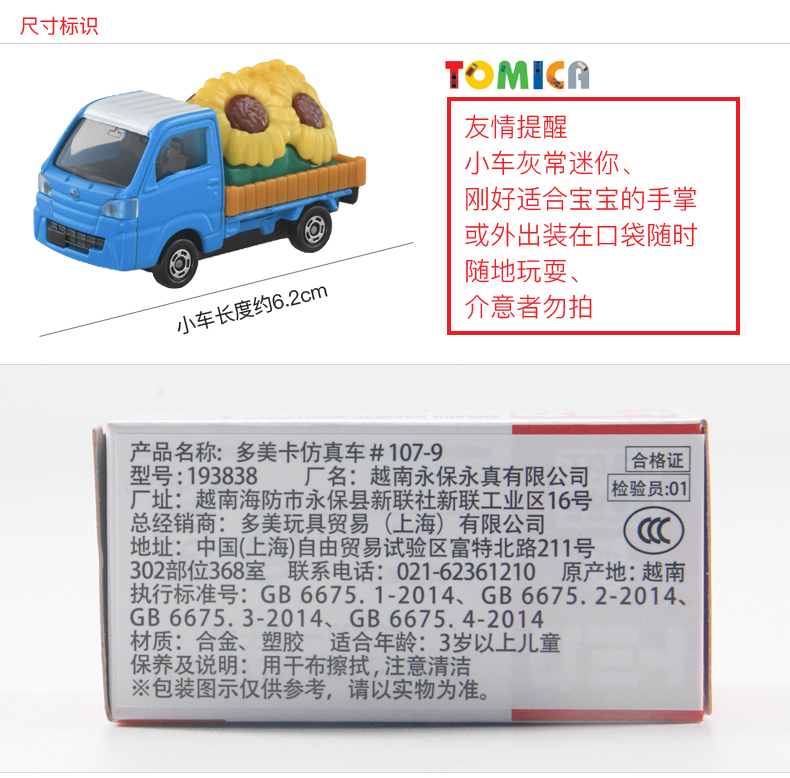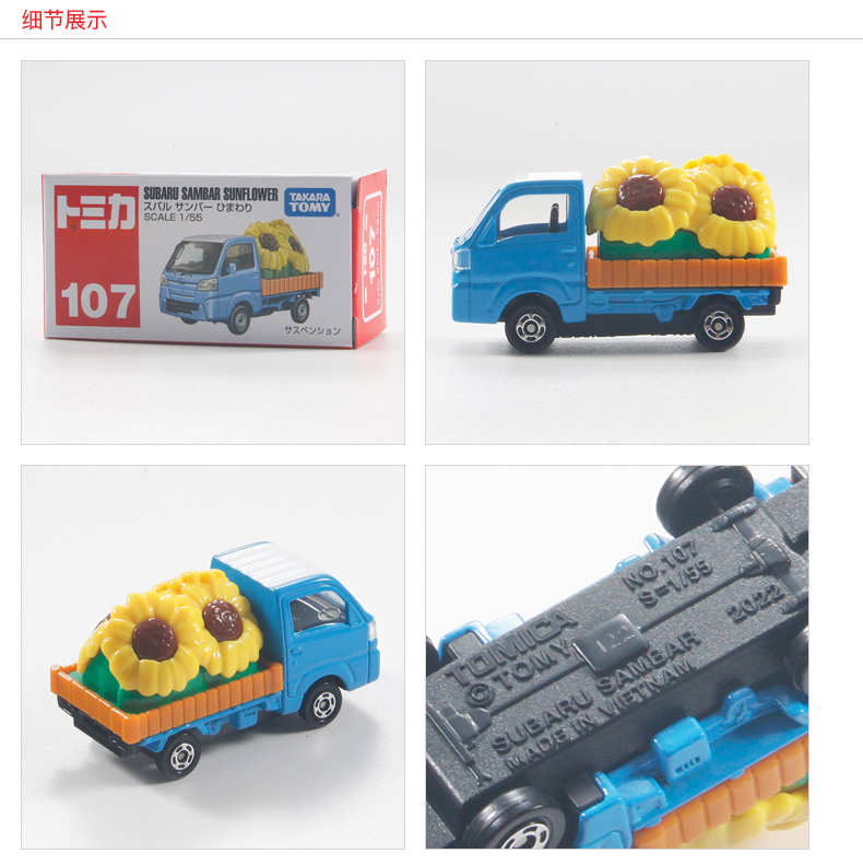 多美卡 仿真车 #107-9 斯巴鲁向日葵运输车 车长约6.2cm 车轮悬挂减震
