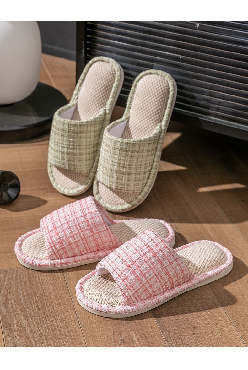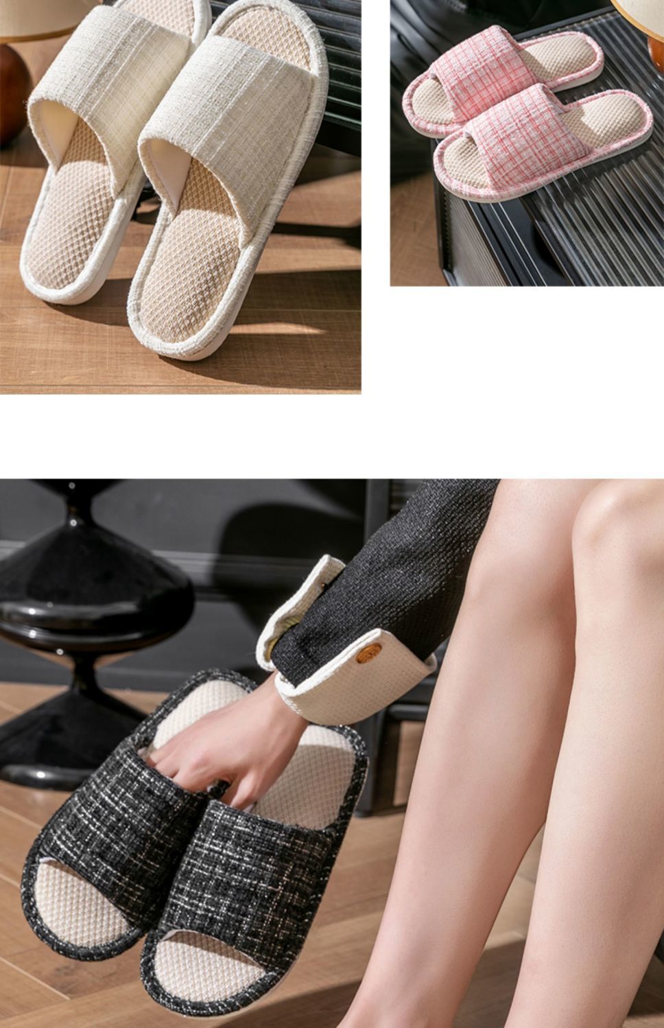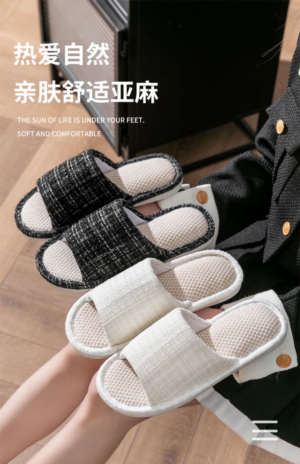 【买一送一】亚麻小香风拖鞋 到手2双 男女情侣居家室内拖鞋 软弹缓震 透气不闷
