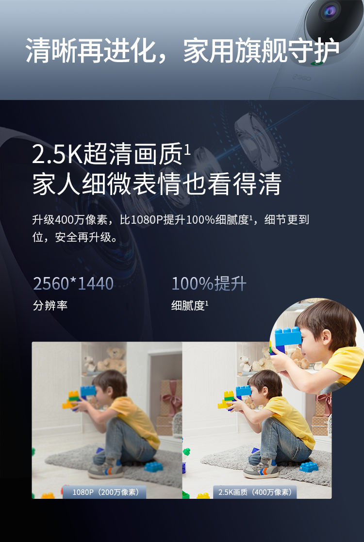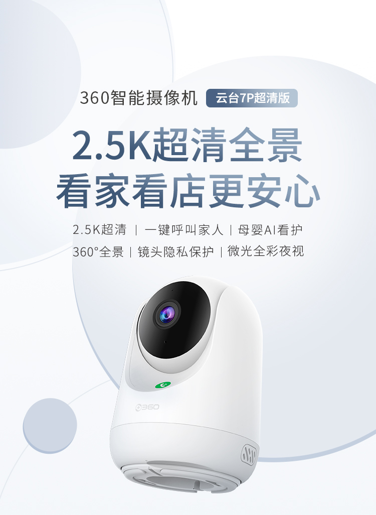 【超值】360 家用监控摄像头智能摄像机 2.5K云台版400万网络wifi高清微光全彩双向通话360度旋转 云台7P超清版