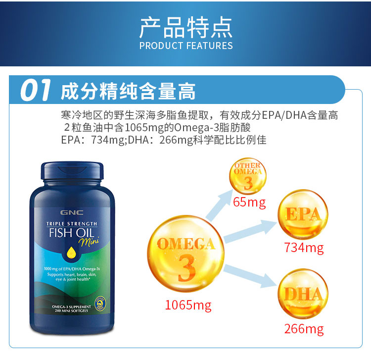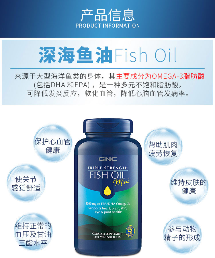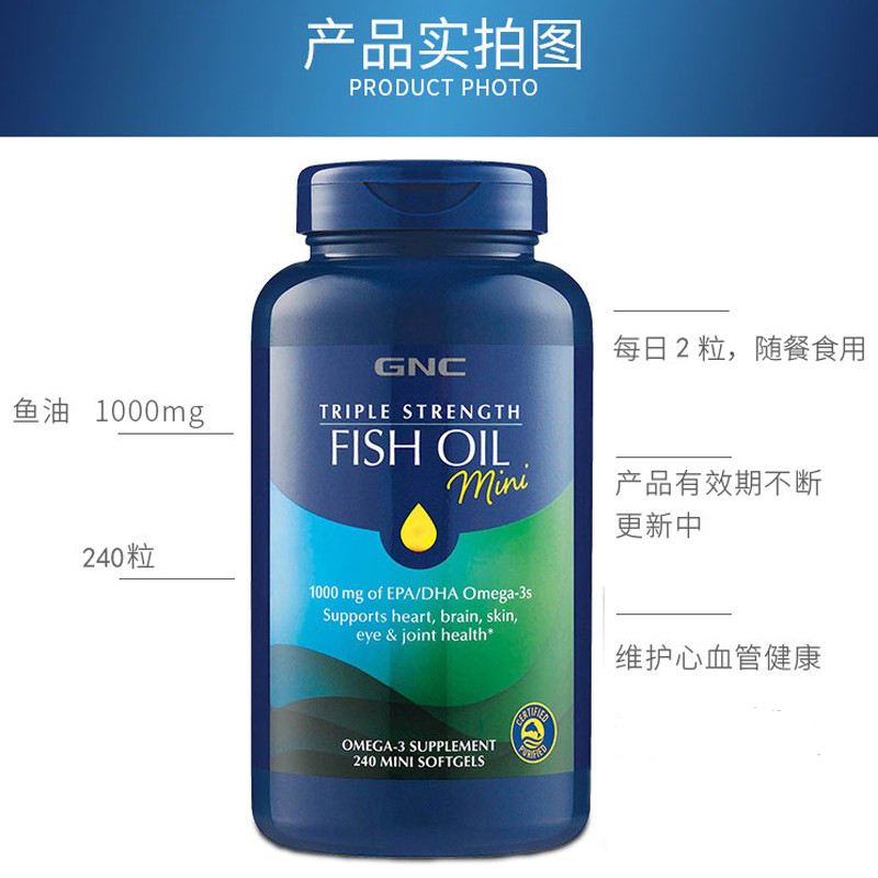 【保税仓】GNC三倍浓缩加强型鱼油软胶囊240粒小粒装韩国产