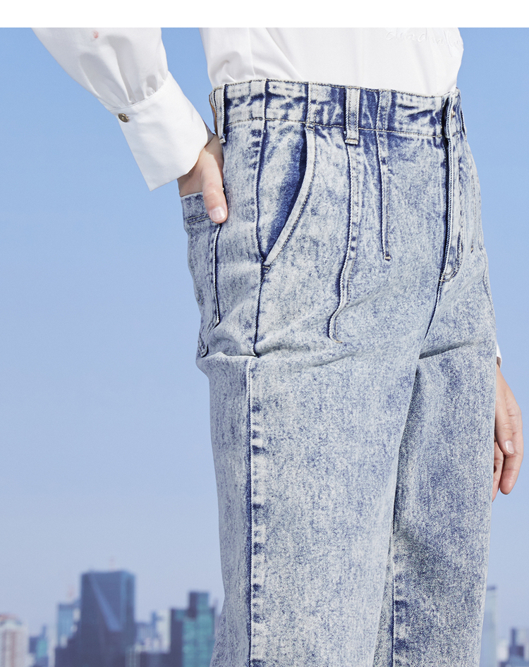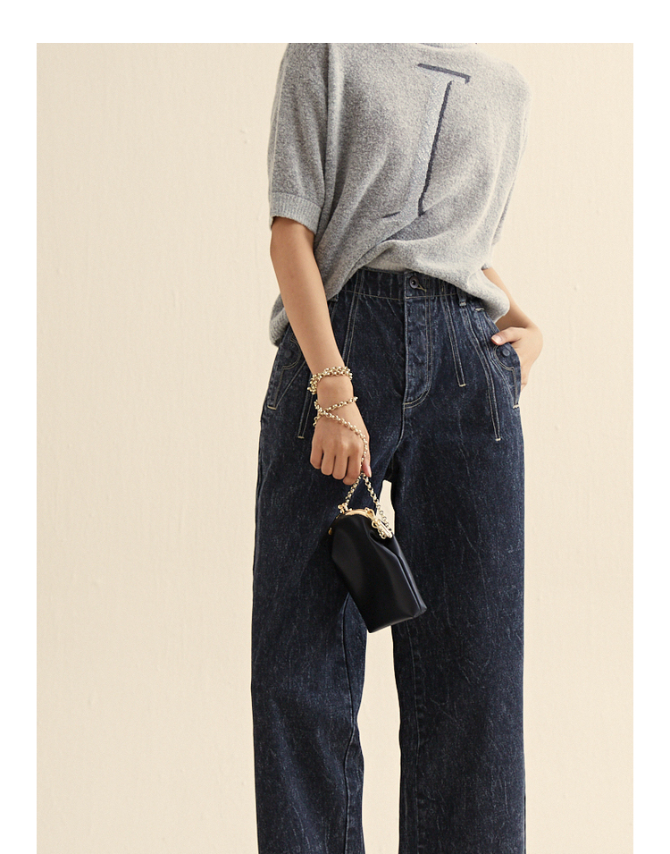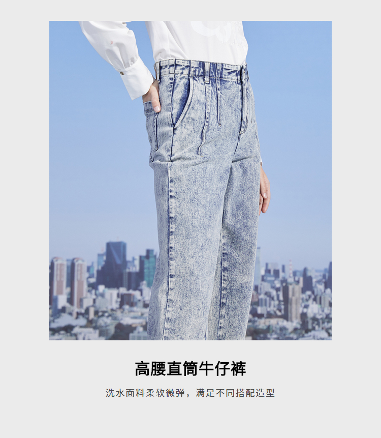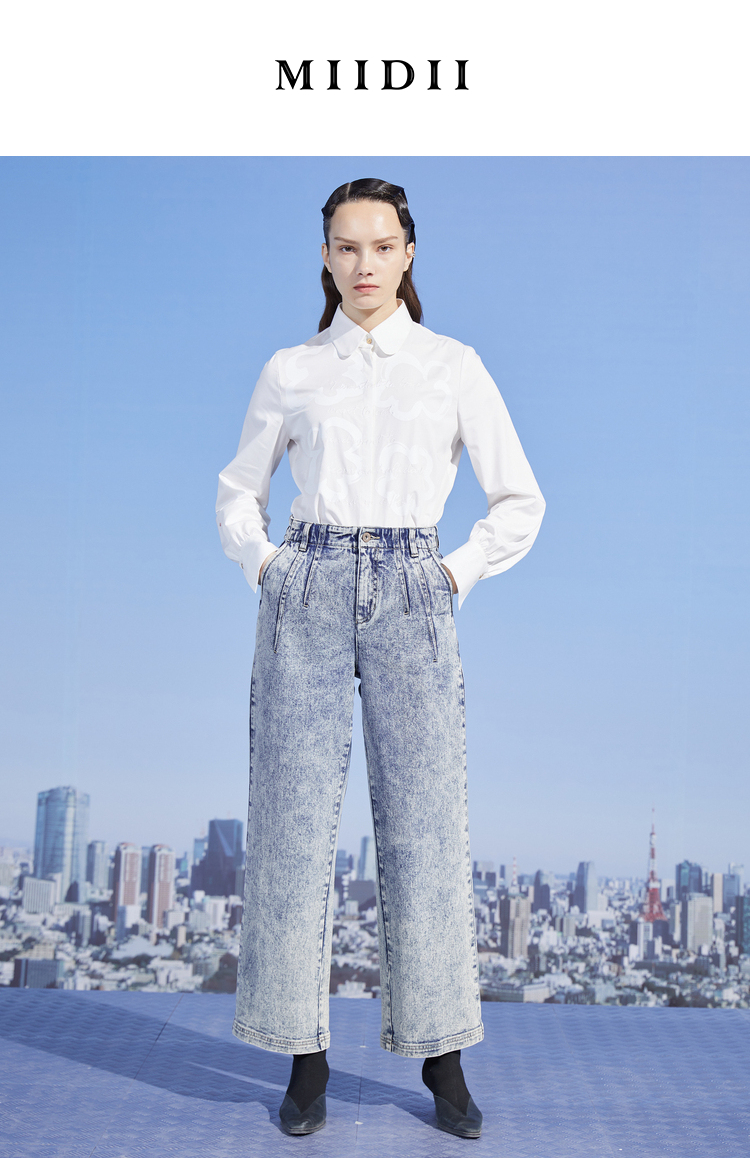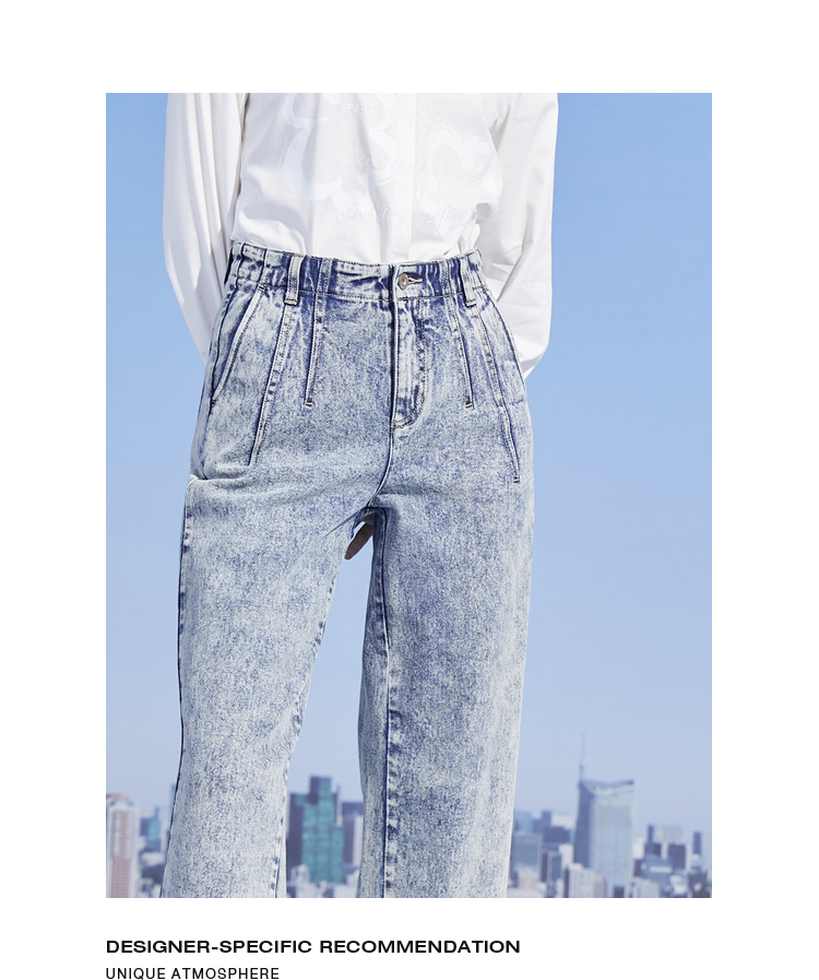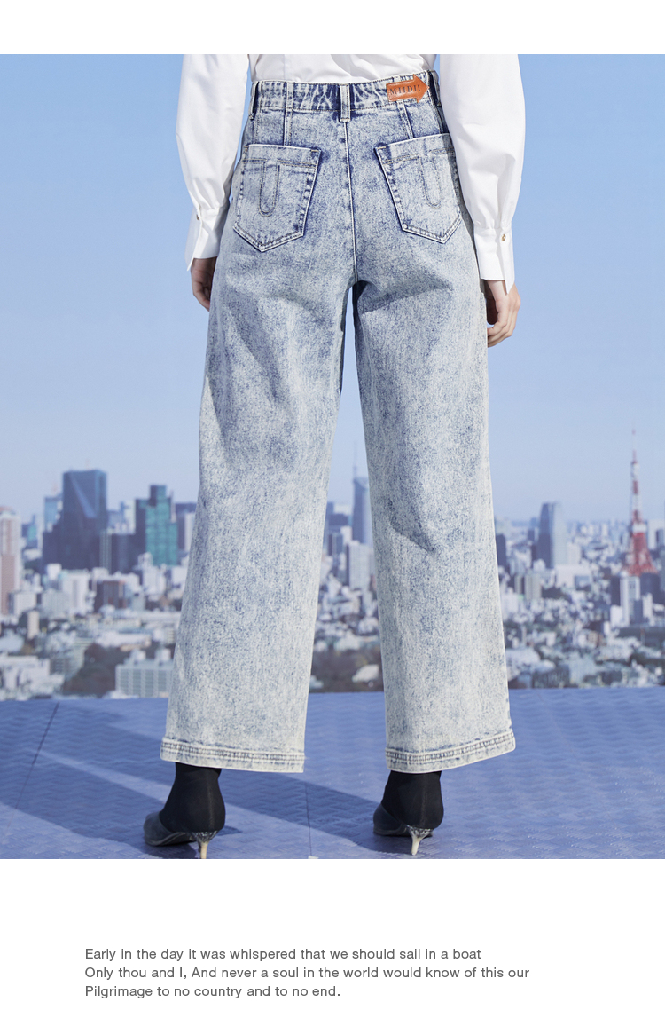 MIIDII/谜底新品摩登复古高腰直筒宽松阔腿牛仔裤女211MK0015