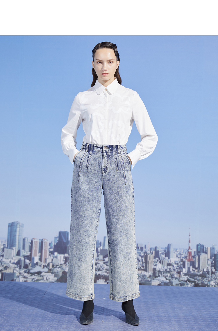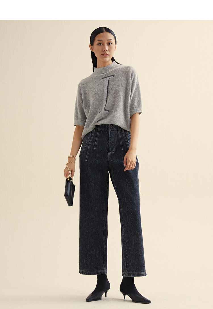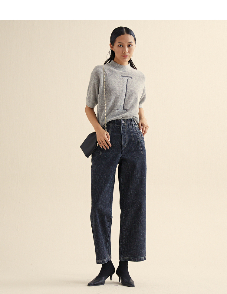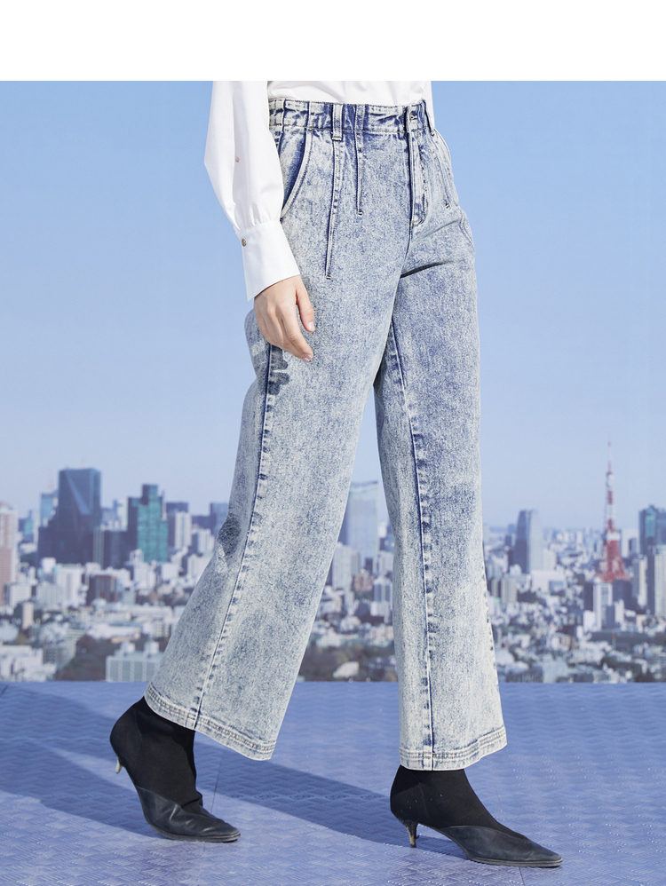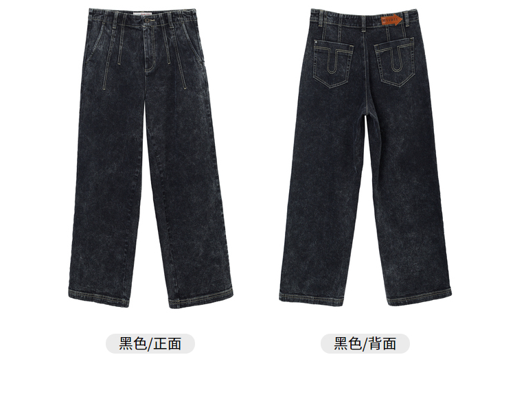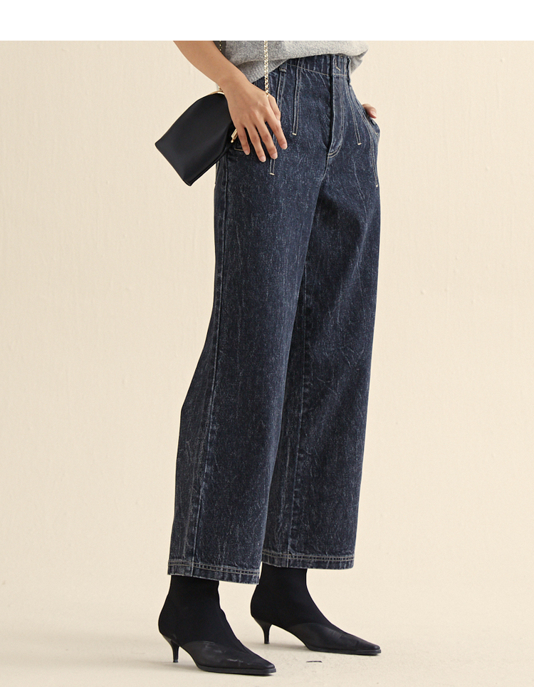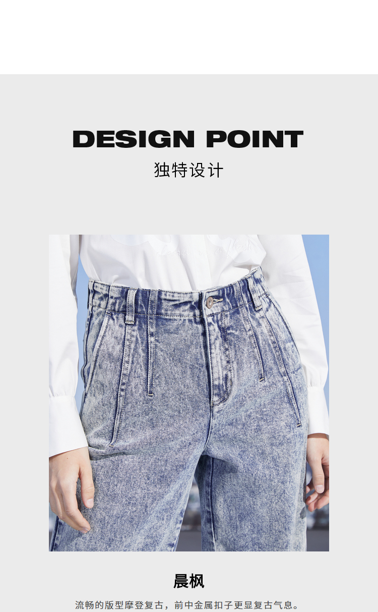 MIIDII/谜底新品摩登复古高腰直筒宽松阔腿牛仔裤女211MK0015