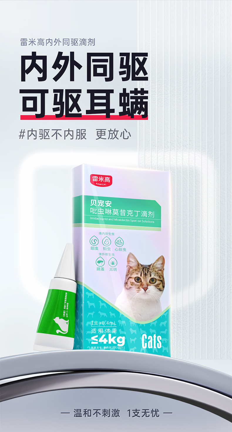 【第二件“半价”】猫犬可用体内外驱虫药猫寄生虫猫用打虫药 吡虫啉莫昔克丁滴剂0.4ml*1支