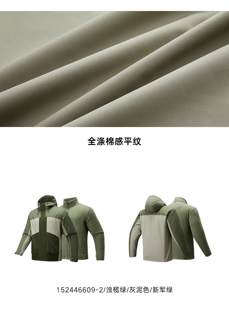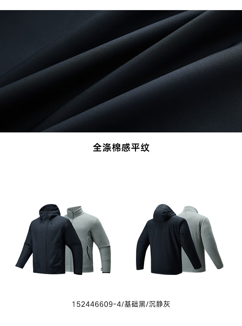 安踏梭织防泼水运动外套男冬季新款户外加绒夹克两件套152446609