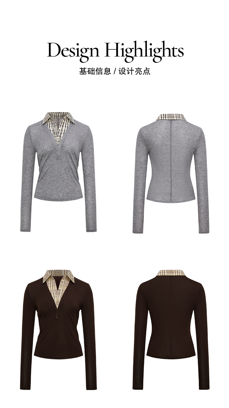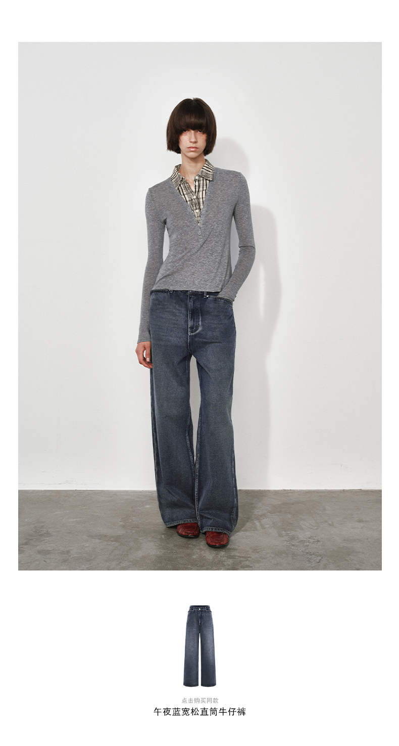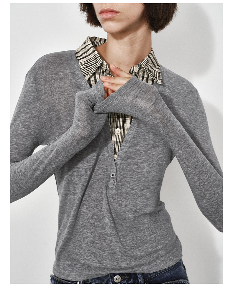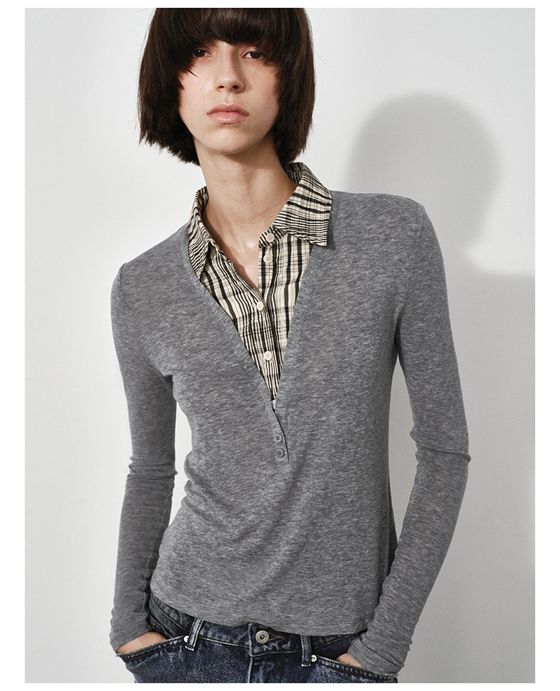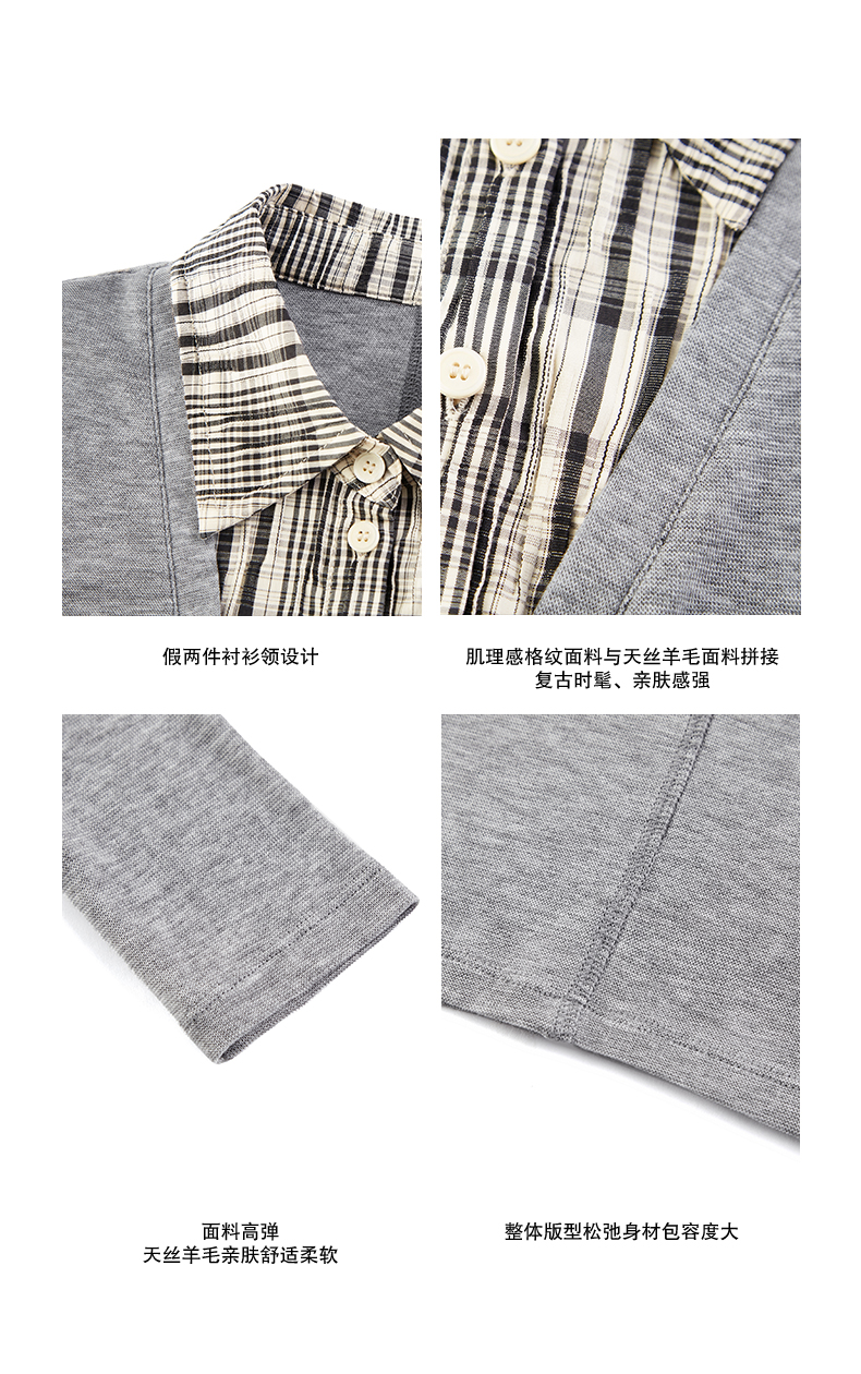 NUTH 格纹拼接假两件针织t恤宽松薄款长袖针织衫上衣女